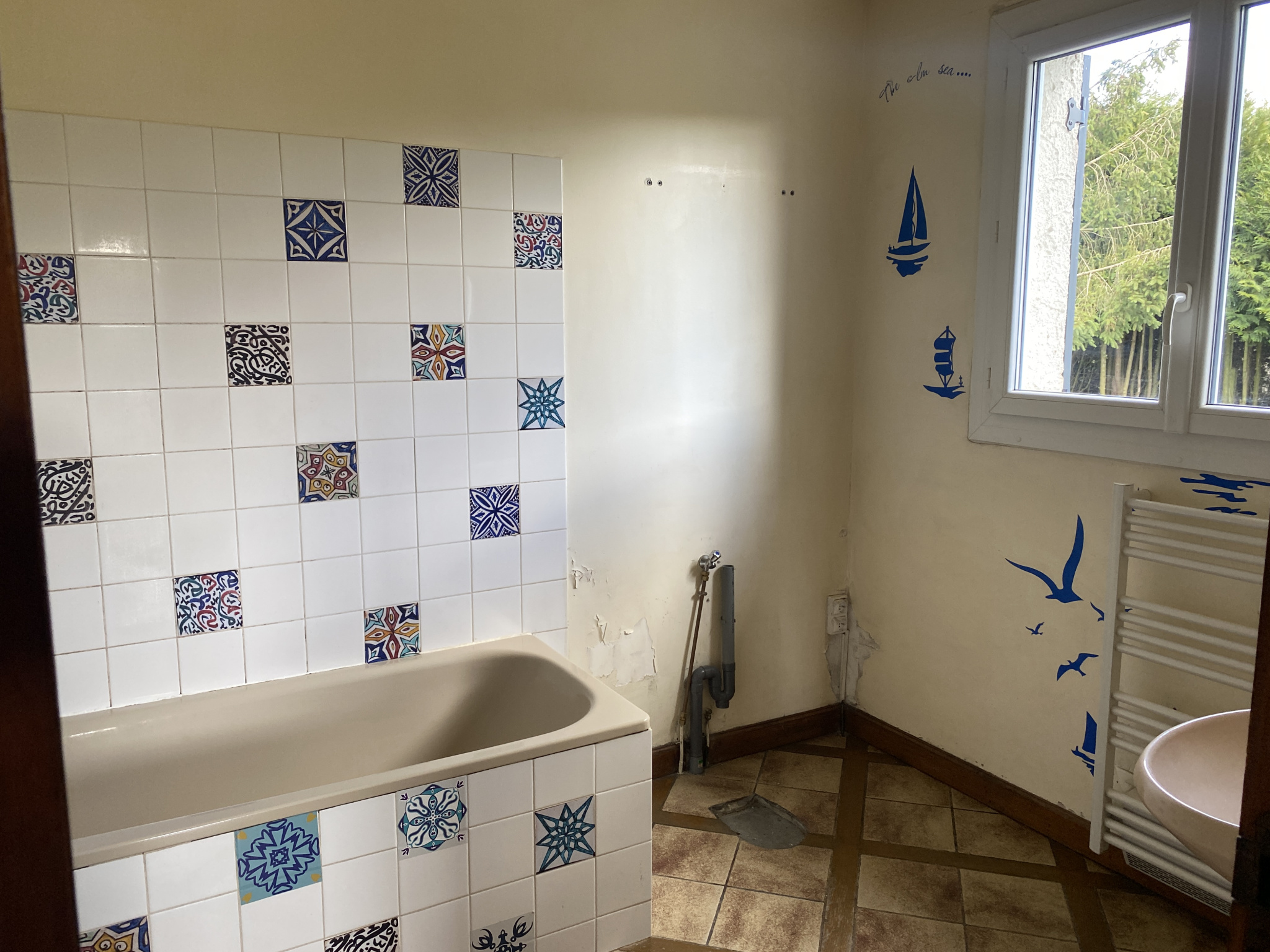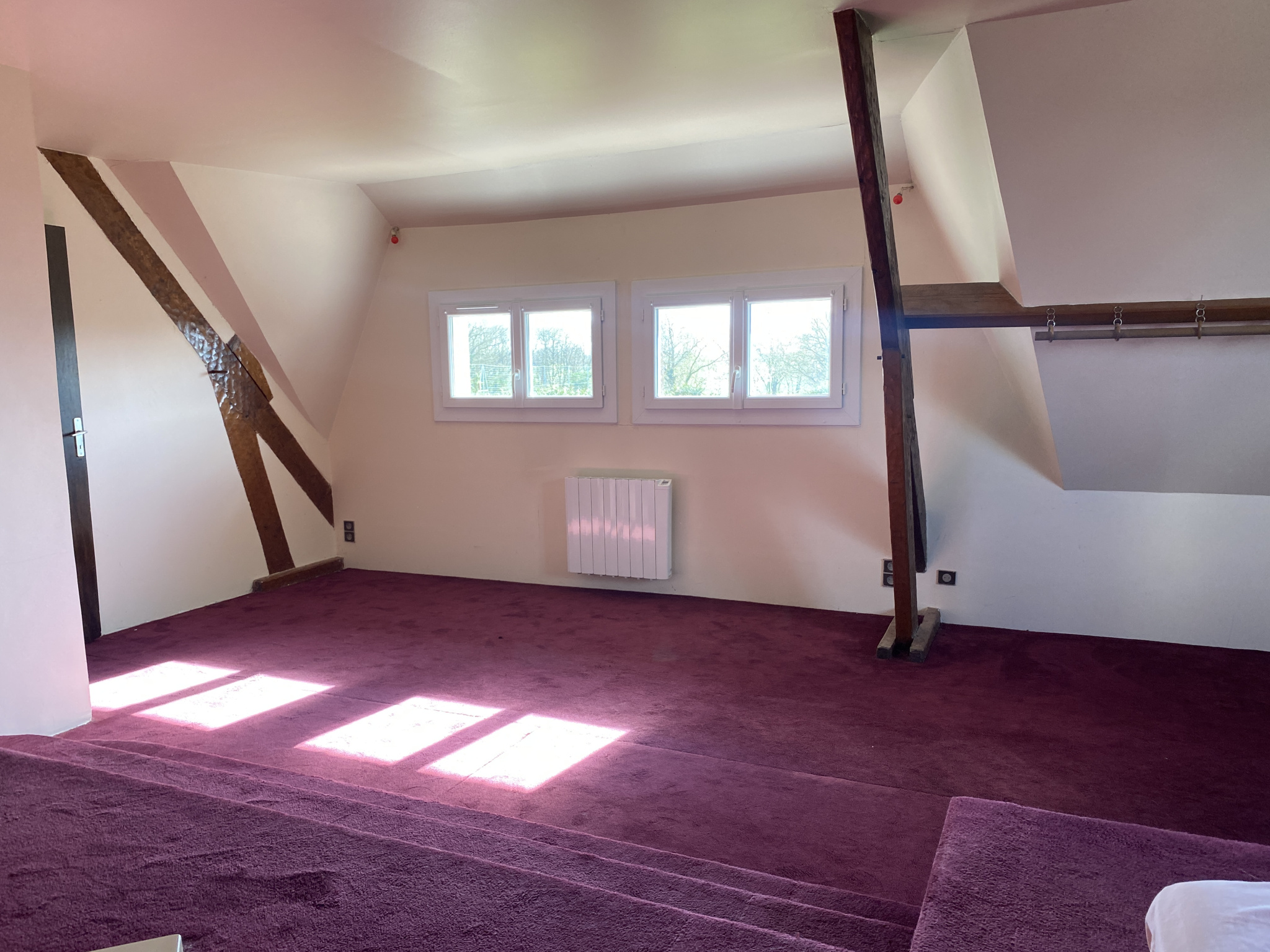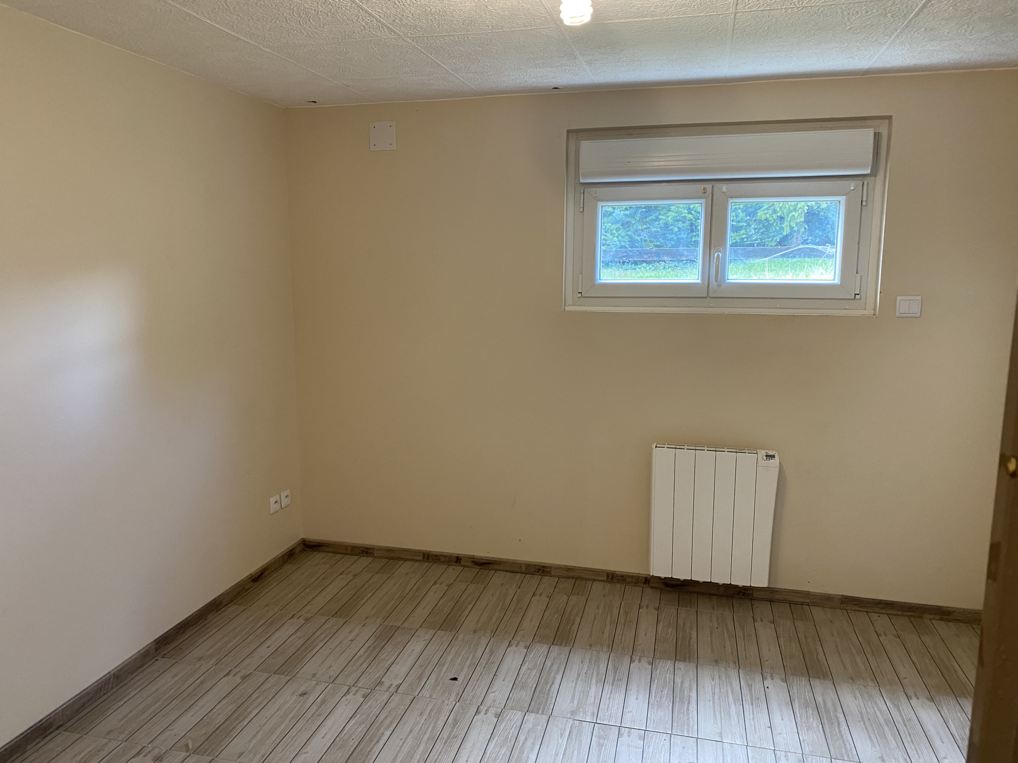 L’habitation comprend un sous-sol complet avec dégagement, chambre de 10.20 m², salle de docuhes de 3.7 m² avec wc sanibroyeur, garage de 37.8 m² pour deux voitures, cellier de 9.9 m². Au rez-de-chaussée : entrée de 6.74 m², séjour en L de 37.63 m² avec cheminée en pierre, cuisine aménagée et ouverte de 10.5 m², salle de bains/buanderie de 5.72 m², wc de 1.02 m². À l’étage : deux chambres dont une avec baignoire (13.63 m² et 30 m²), wc.