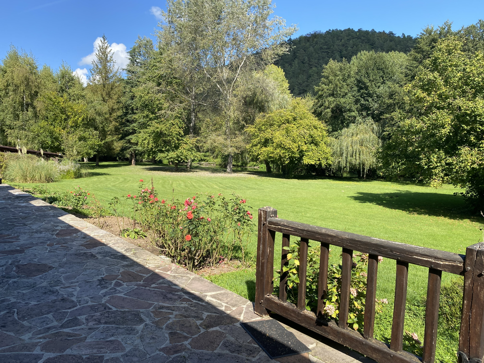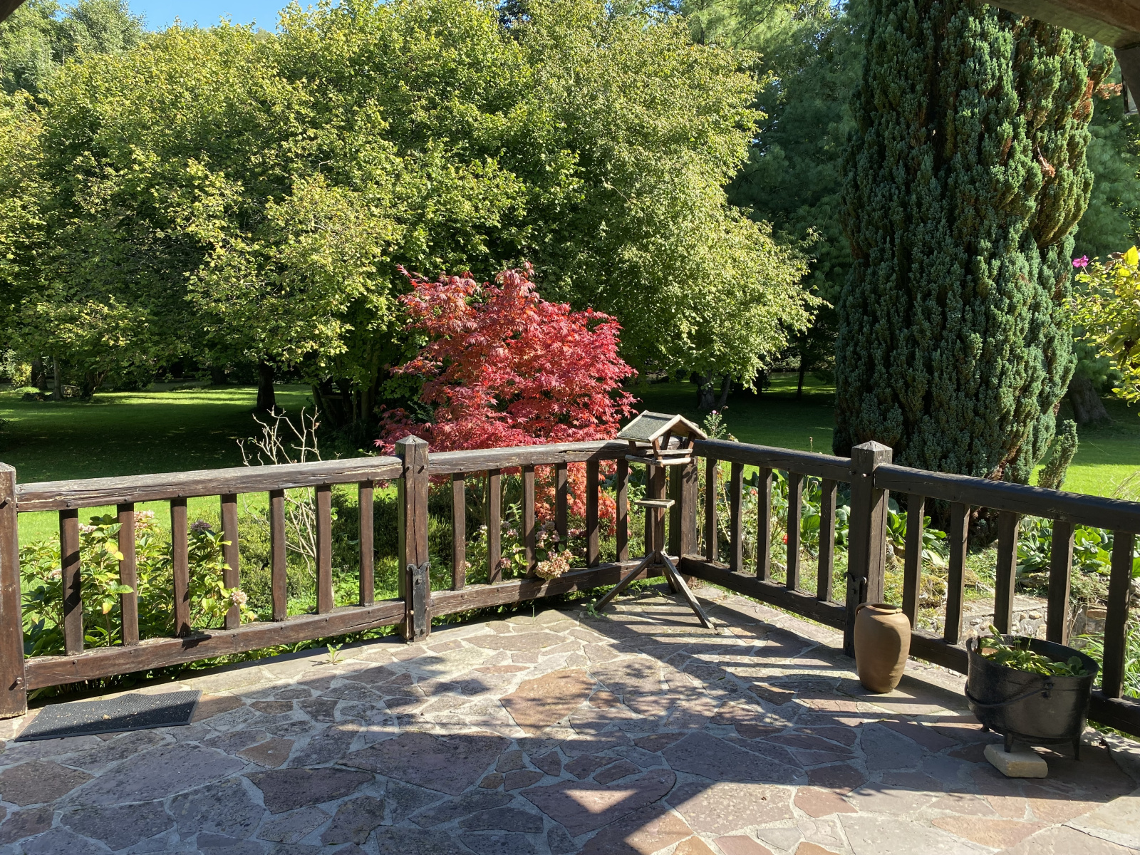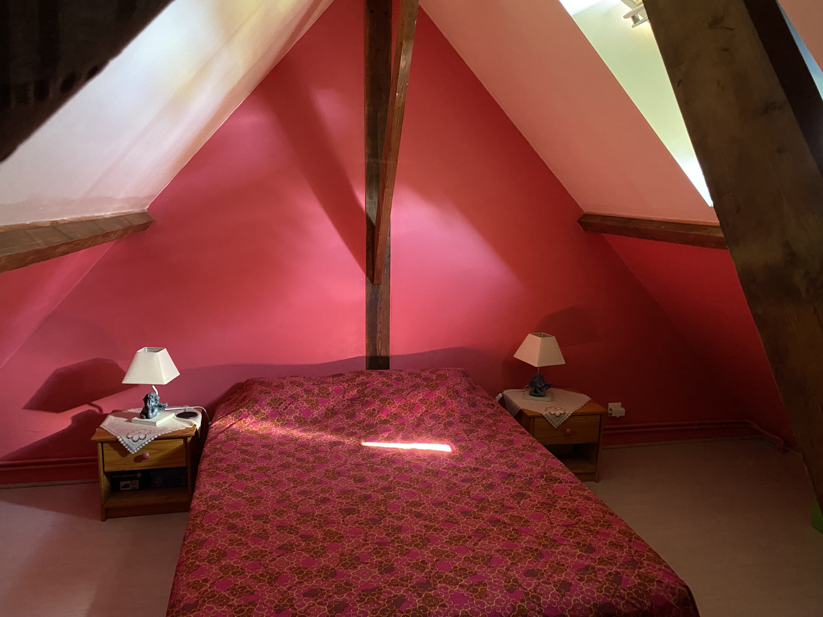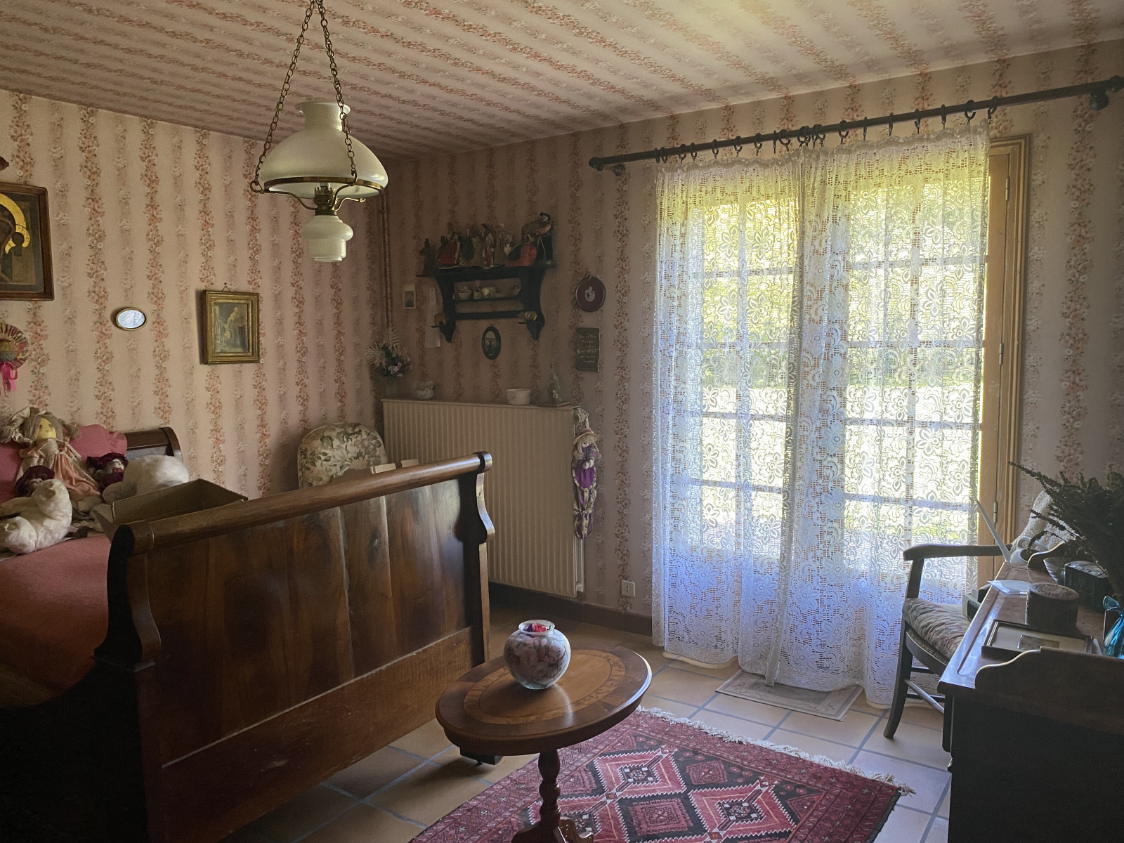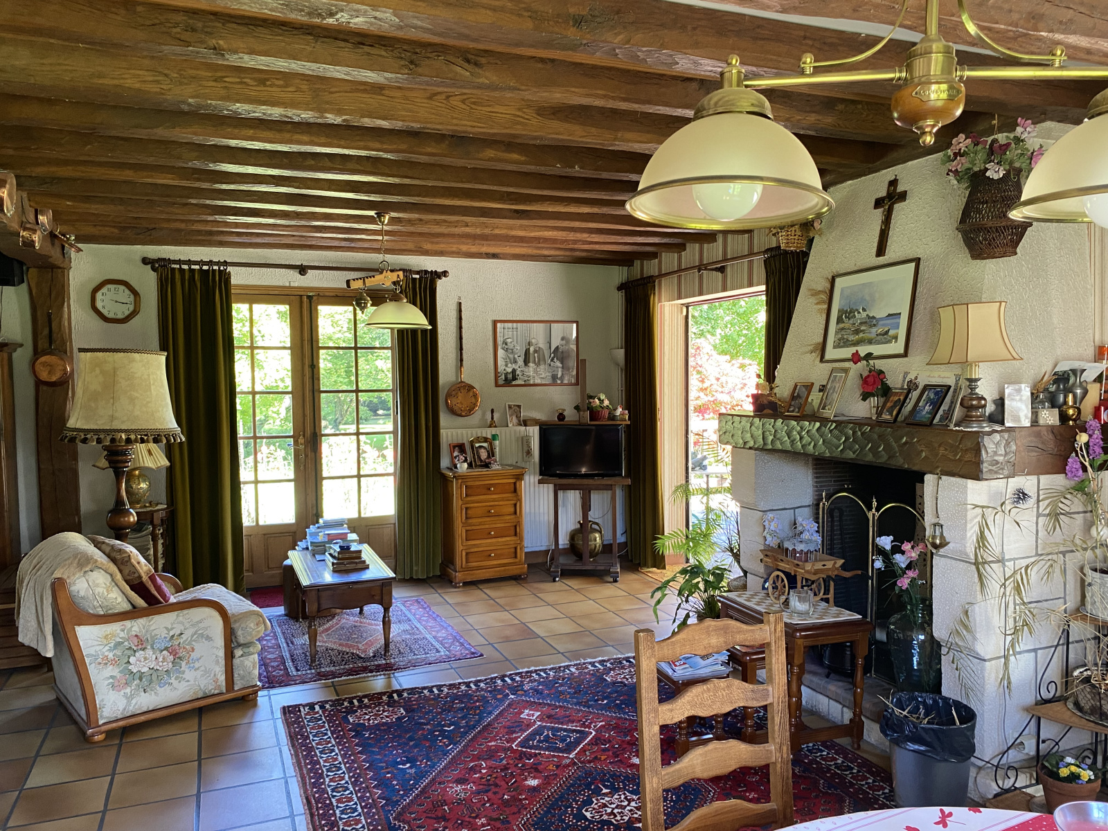 La maison principale (174 m²) comprend au rez-de-chaussée : entrée double de 16.96 m² avec départ d'escalier, cuisine aménagée de 12.37 m², séjour de 38.79 m² avec portes-fenêtres et accès à un bel auvent, wc, dégagement, salle de bains de 8.75 m², chambre de 15.24 m², dégagement avec placard, chaufferie avec rangement. À l’étage : palier de 8 m², trois chambres (21.78 m², 13.39 m² et 14.78 m²) dont une avec dressing et une avec dressing et porte-fenêtre donnant sur une terrasse avec vue sur le jardin boisé, salle de bains de 5.58 m², wc.
