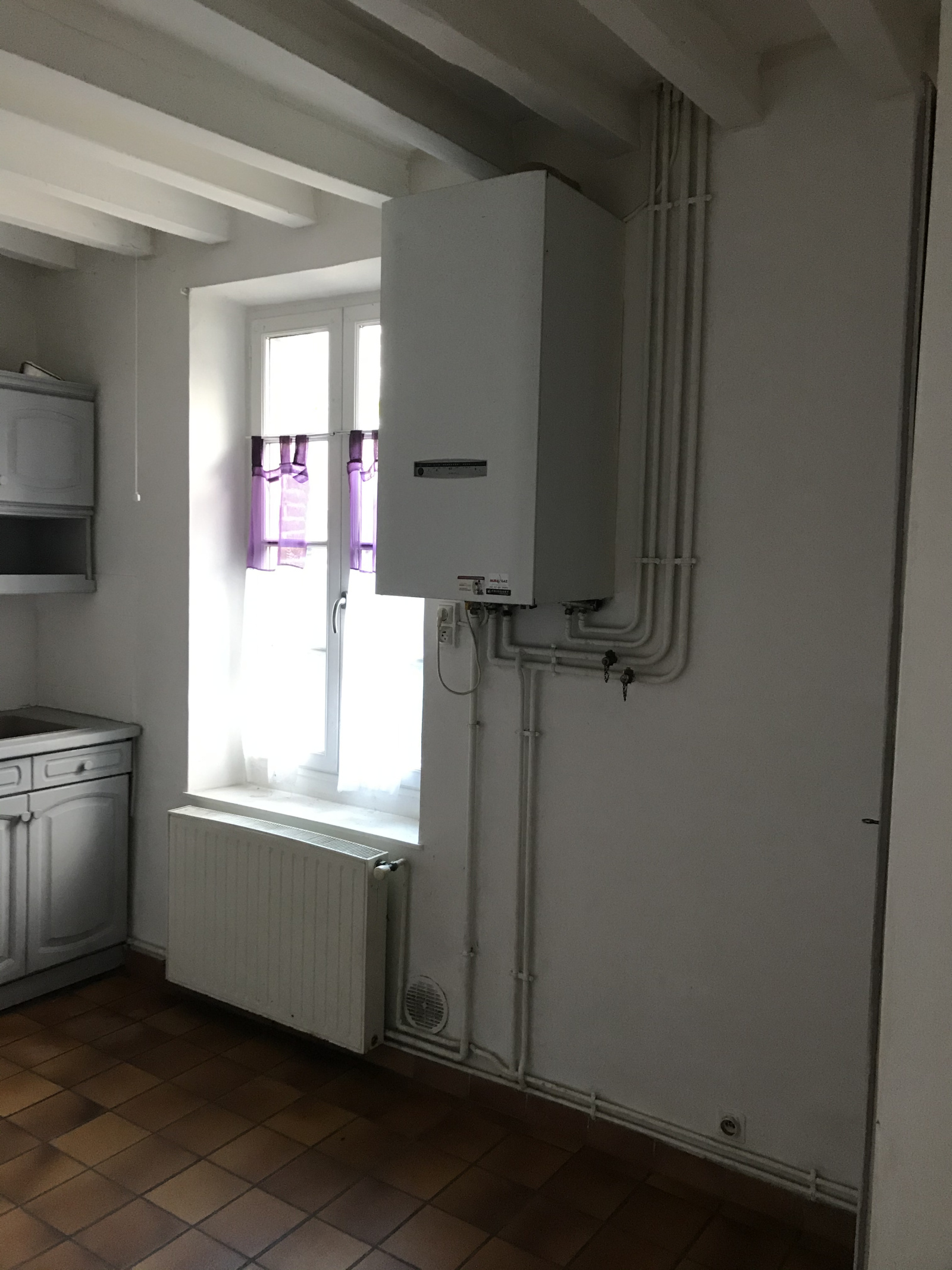 MT 20836. Dans un petit village, maison ancienne de plain-pied d'une surface habitable de 69 m² comprenant : entrée 3.78 m², salon-salle à manger de 22.12 m² avec cheminée insert et vieilles tomettes, cuisine aménagée (ancienne) 12.05 m², 2 chambres (11.71 m² et 11.70 m²), salle de bains 5.61 m² et wc. Grenier sur le tout. Four à pain. Préau. Pièce. Tout confort : chauffage central au gaz de ville. Terrain : 895 m².