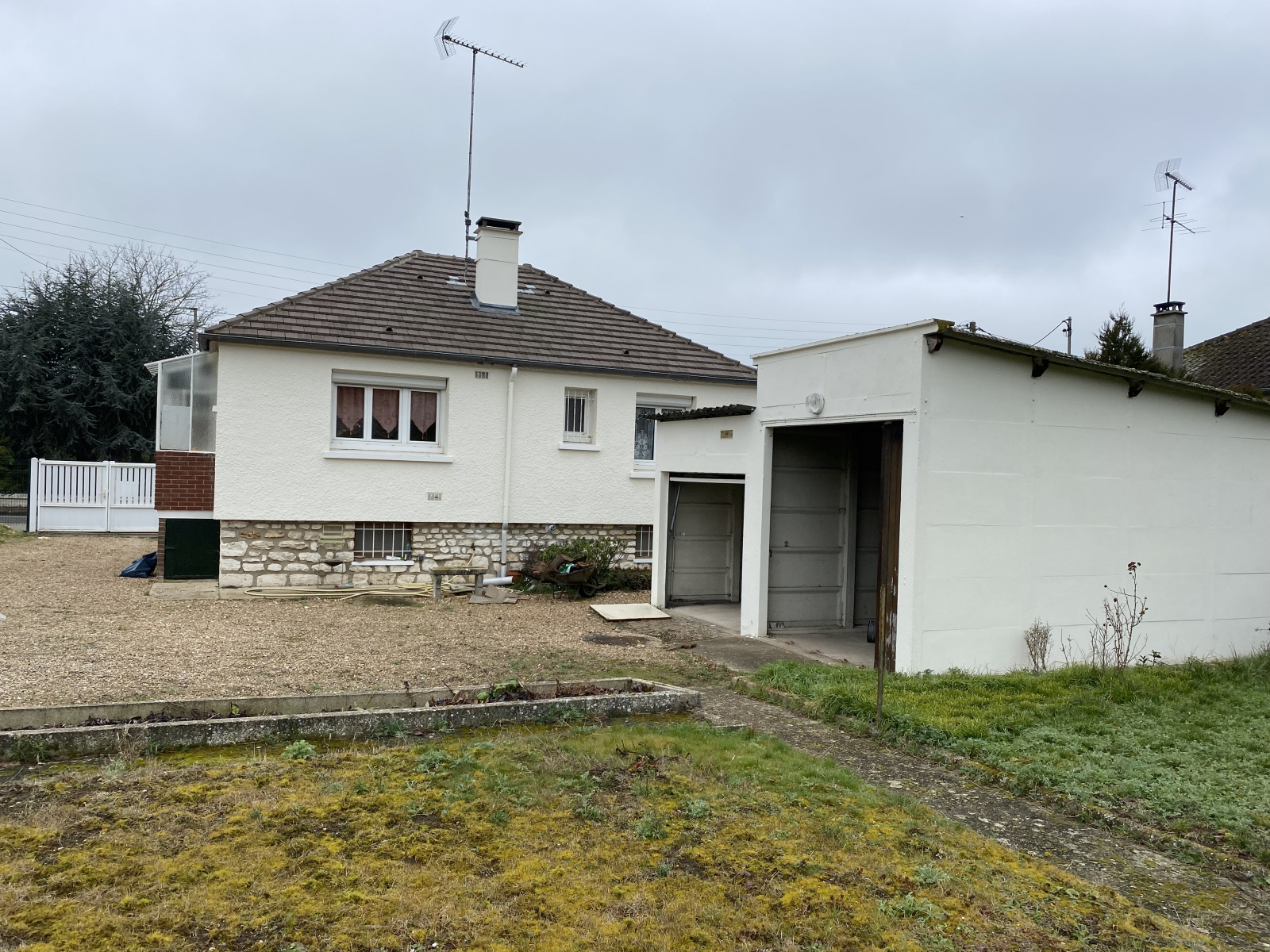 Maison traditionnelle d’une surface habitable de 52 m² située à proximité des écoles et des commerces. Elle comprend un sous-sol total avec garage, atelier et rangement. Au rez-de-chaussée : entrée de 2.07 m², cuisine aménagée de 8.41 m², salon-salle à manger de 17 m², 2 chambres (11.44 m² et 6.89 m²), salle de douches de 2.45 m², wc, dégagement de 2.29 m², placards, buanderie et cave. Double garage indépendant. Terrain de 841 m².