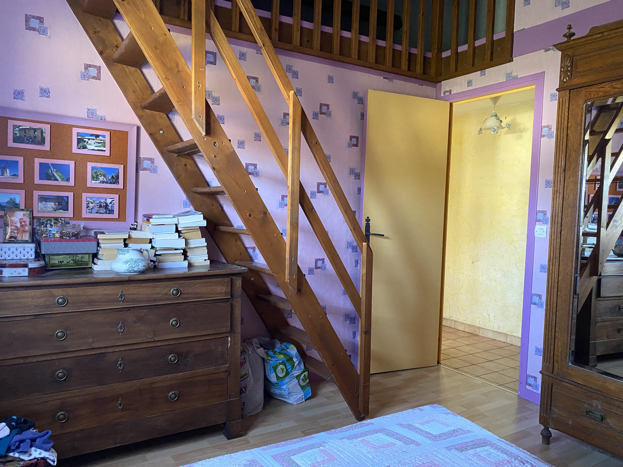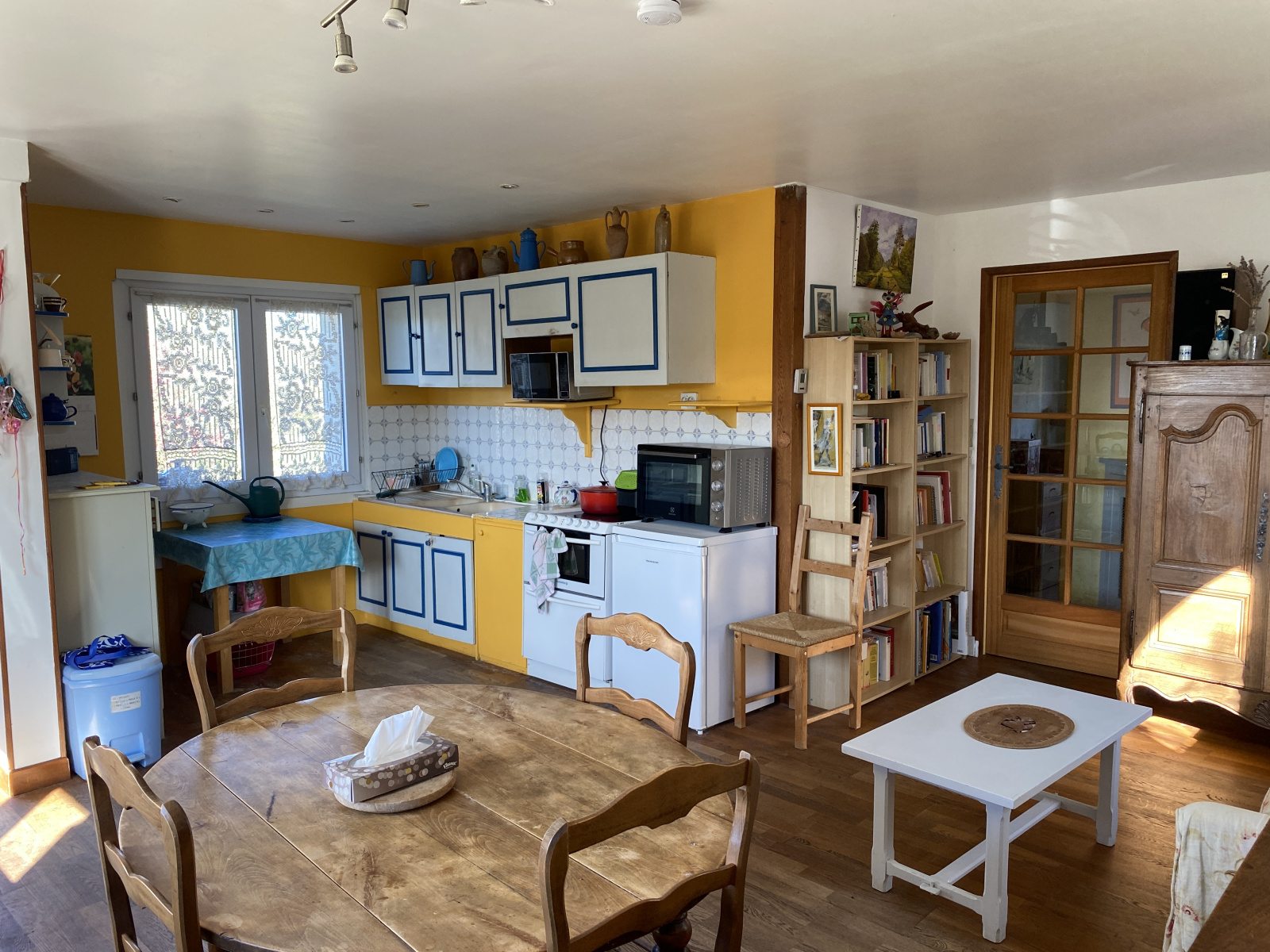 L’habitation, d’une surface habitable de 58.87 m², comprend : entrée de 2.24 m², salon-salle à manger de 19.09 m² ouvert sur cuisine aménagée ancienne de 7.01 m², deux chambres dont une avec mezzanine (11.71 m² et 10.29 m²), salle de douches de 3.65 m², wc, dégagement de 3.61 m².