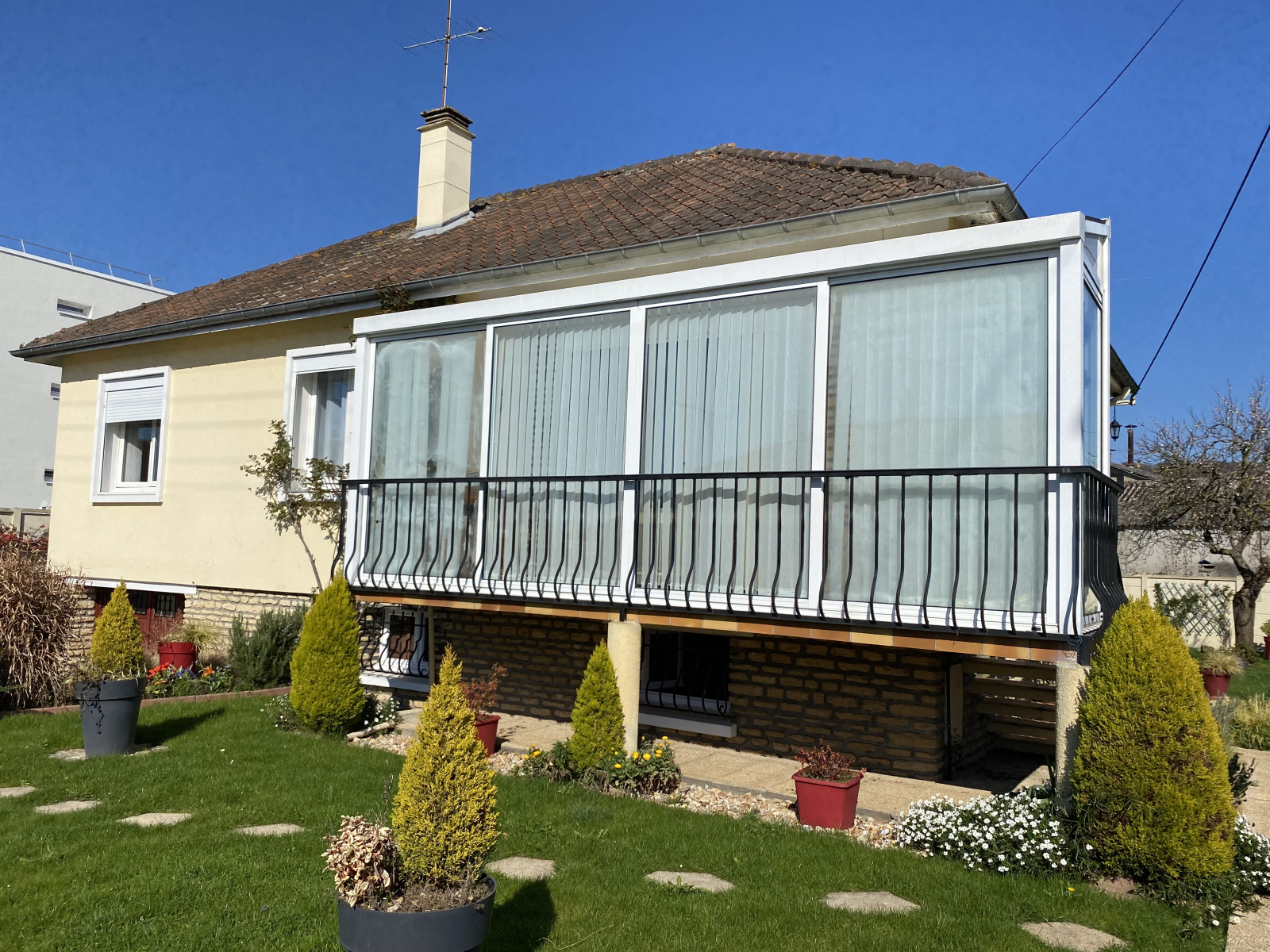 Tout confort : chauffage central au gaz de ville, double vitrage et volets roulants.