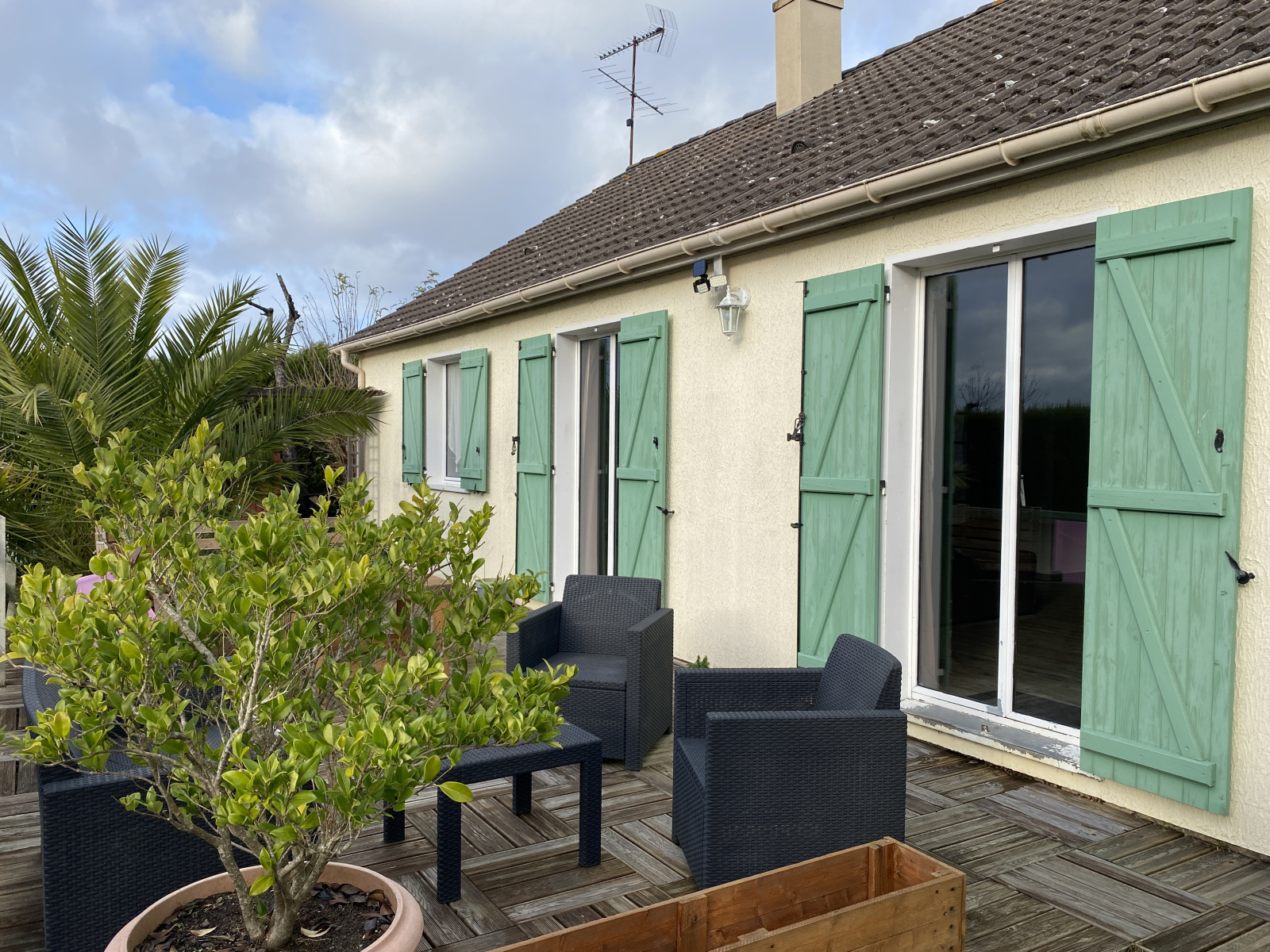 Dépendances : garage/atelier attenant à la maison, terrasse plein sud.