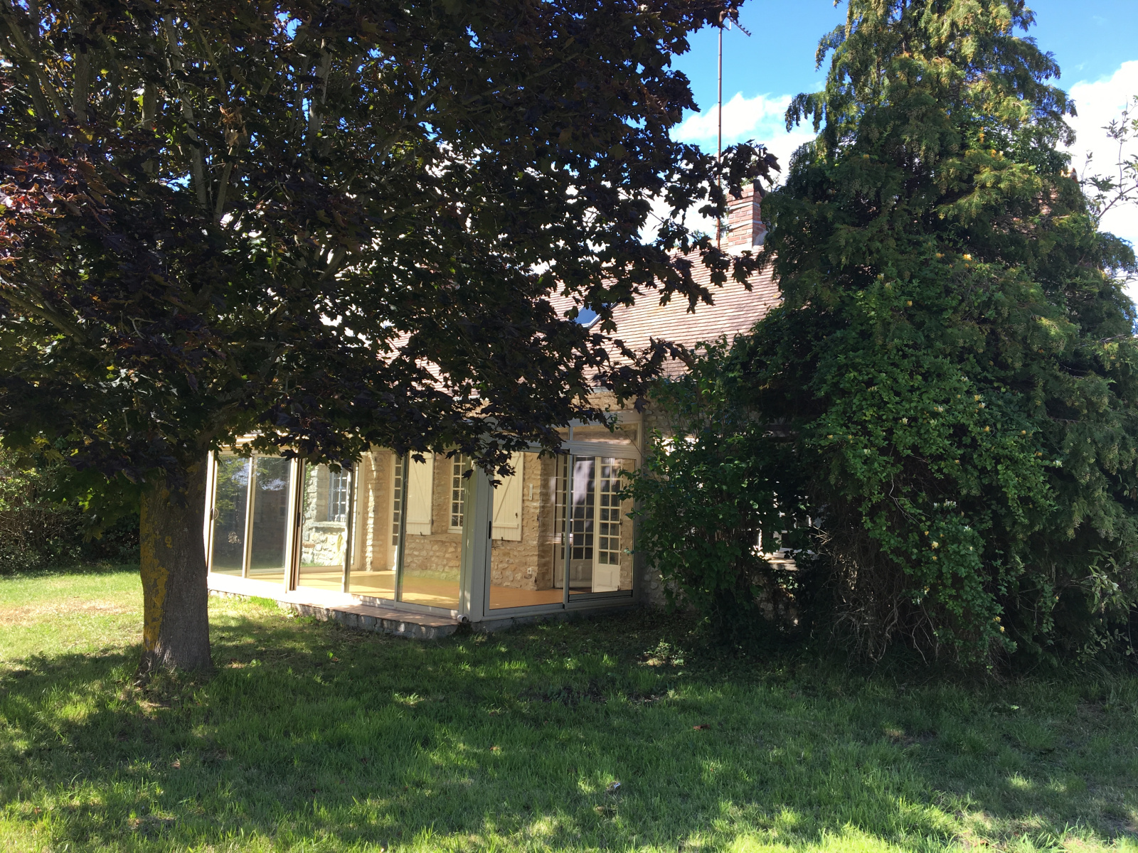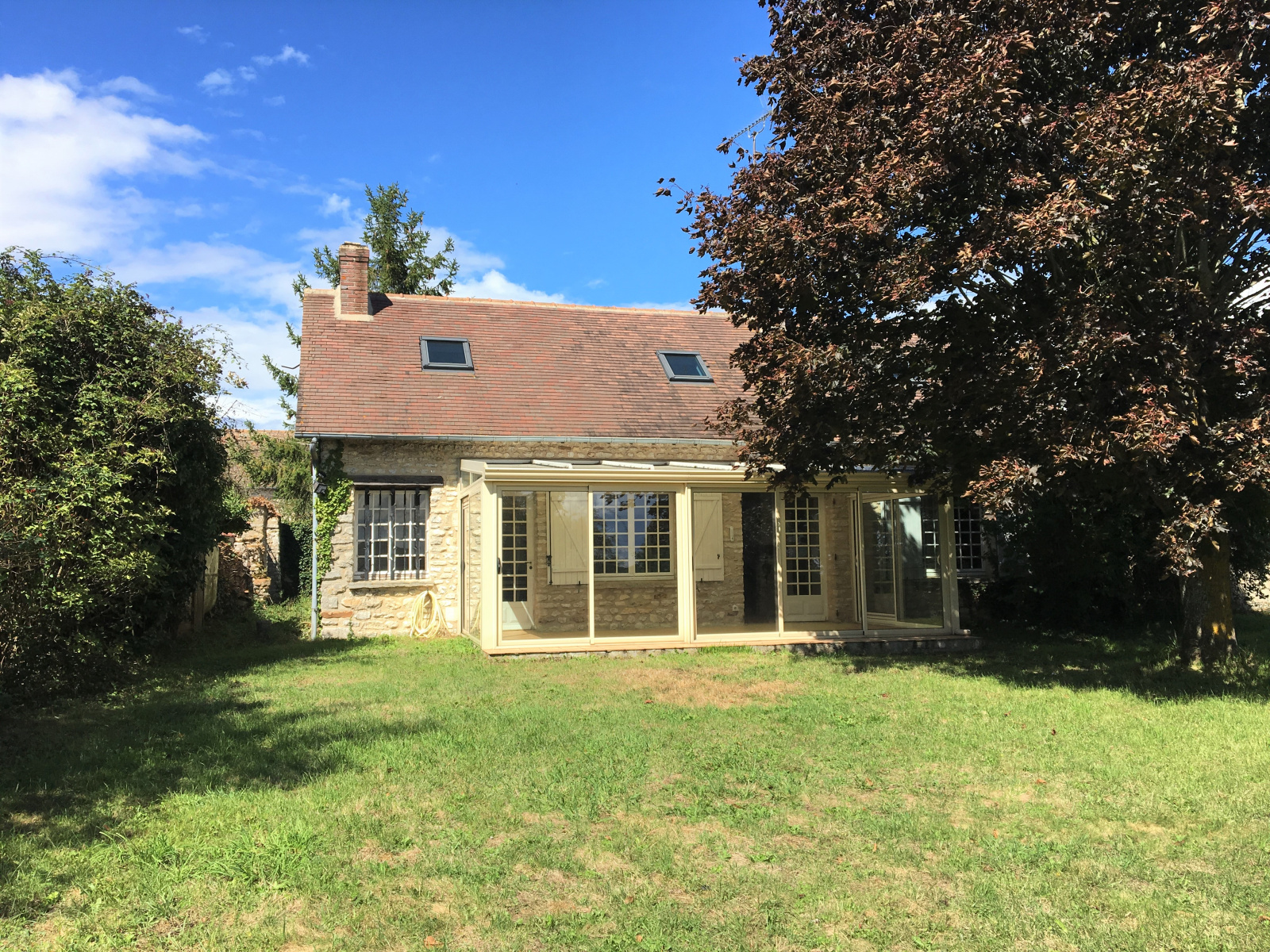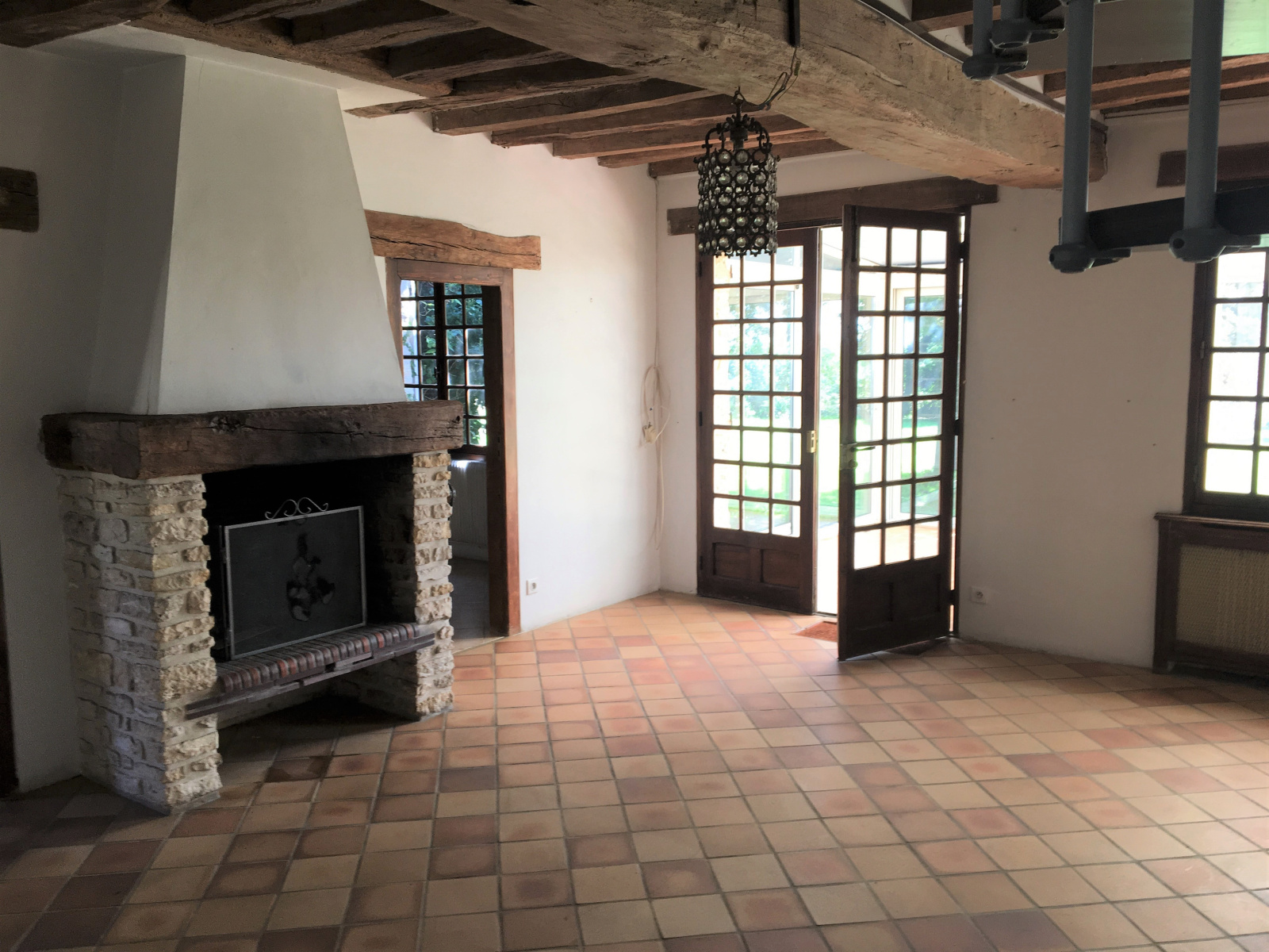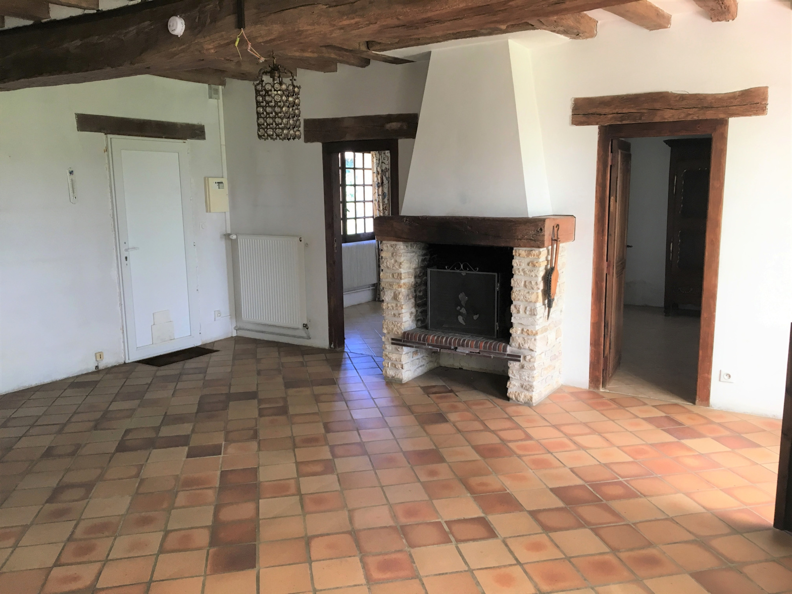 MT 20720. RÉGION DE PACY SUR EURE. Belle vue dégagée sur la campagne. Maison ancienne pleine de charme d’une surface habitable d’environ 128 m². RDC : Entrée sur salon-salle à manger 28.42 m² avec cheminée, véranda 19.34 m², cuisine aménagée 8.49 m², 2 chambres : 10.81 m² et 10.80 m², salle de douches 6.56 m², chaufferie, wc. Étage : Pièce palière 16.11 m², 2 chambres : 13.74 et 13.54 m². Chauffage au fuel. GARAGE 1 VOITURE. PISCINE AVEC ABRI ET SYSTÈME DE FILTRATION ( À REFAIRE ). Terrain : 1235 m².