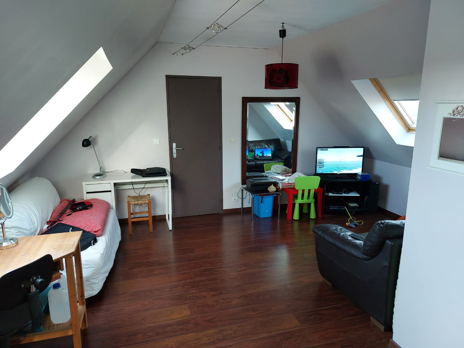 À l’étage : grand palier à usage de salle de jeux 30 m², 2 chambres (11.22 m² et 16 m²), salle de bains/wc 6.56 m².