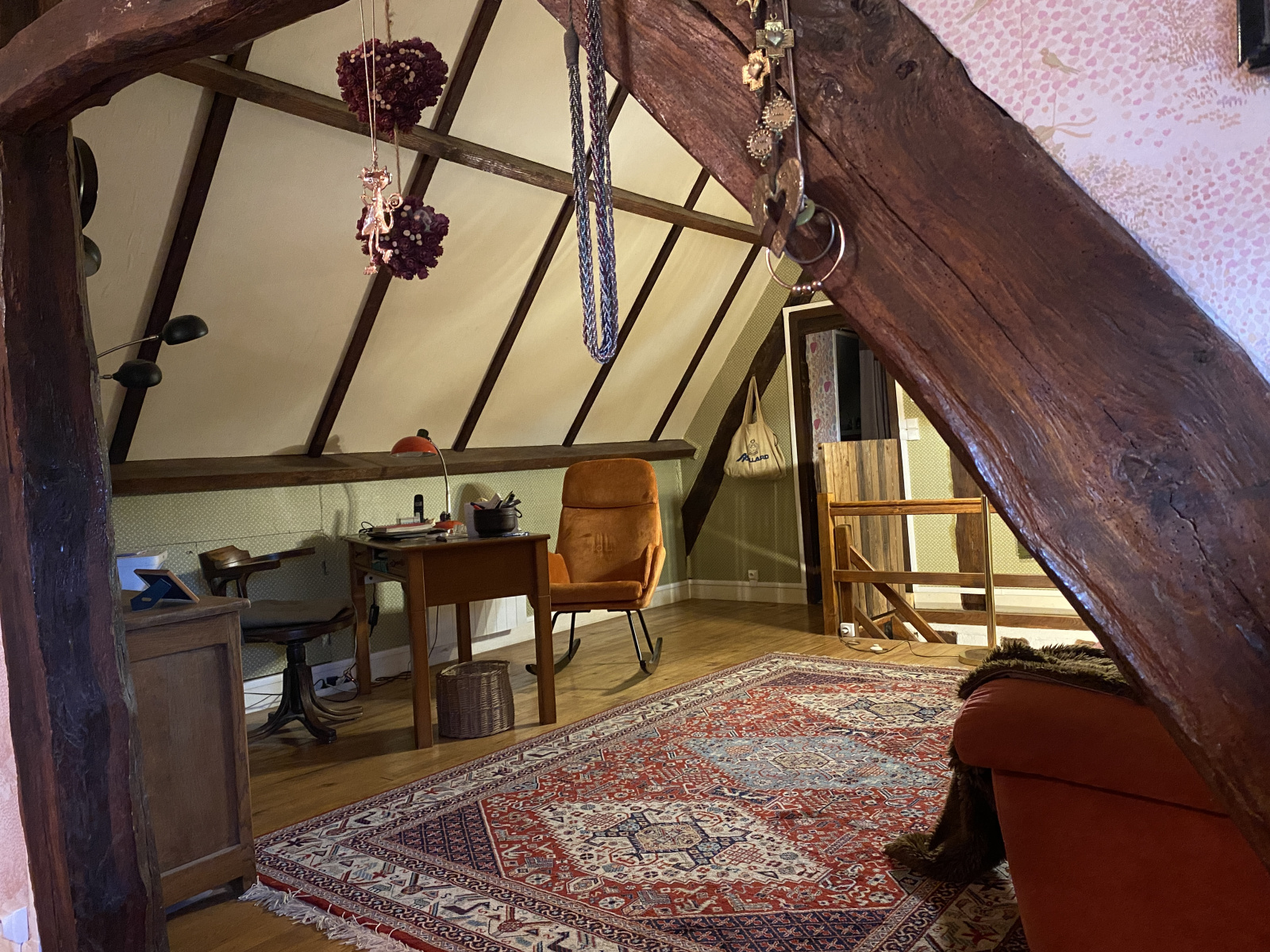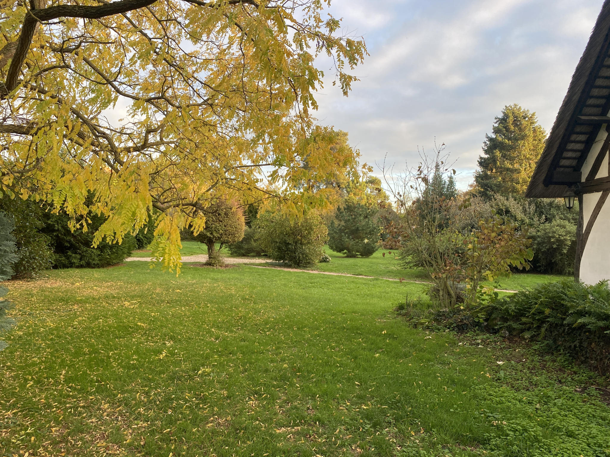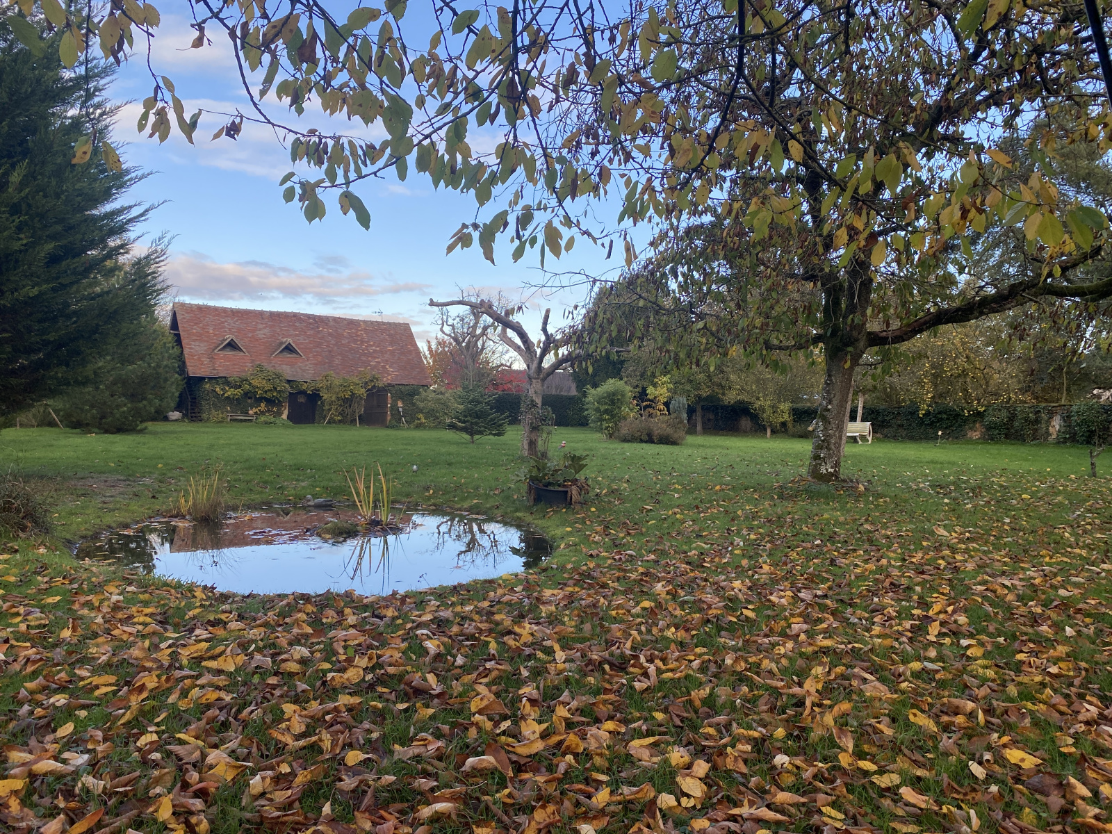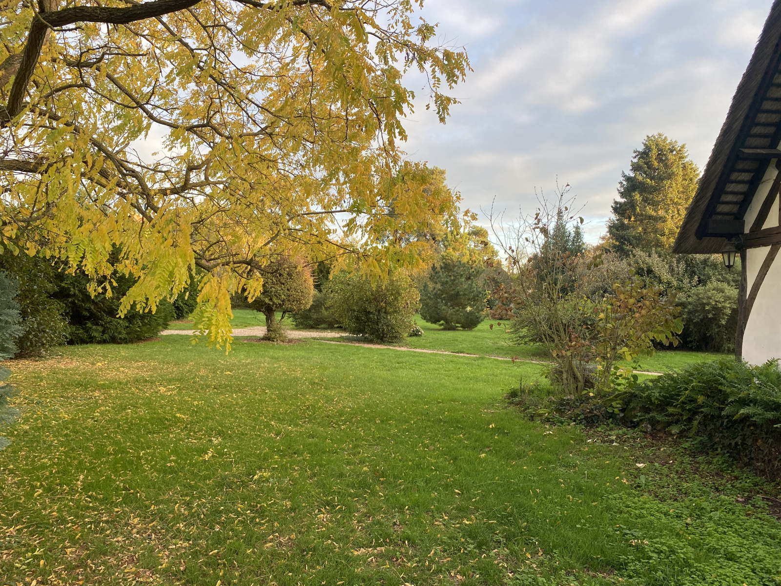 Belle maison ancienne à colombages située dans un village et édifiée sur un beau terrain arboré.