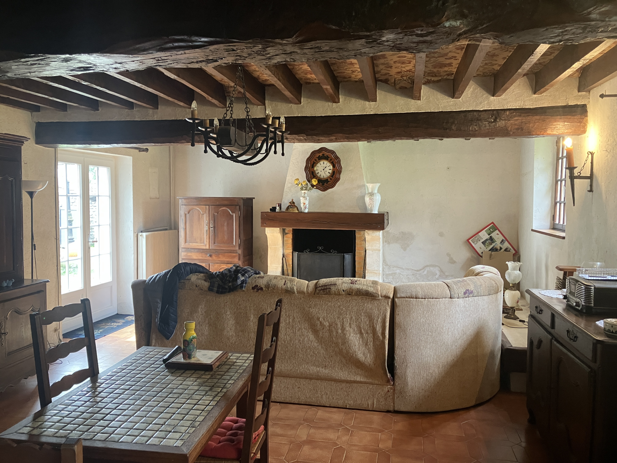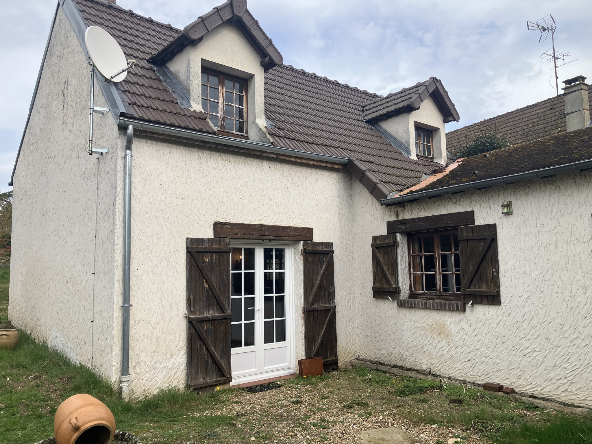 Maison ancienne d’une surface habitable de 135.5 m² comprenant au rez-de-chaussée : entrée, salon-salle à manger de 40.53 m² avec cheminée, cuisine aménagée (ancienne) de 10.64 m², salle de bains/wc de 5.44 m², trois chambres en enfilade (16.94 m², 13.60 m² et 8.30 m²). À l’étage : pièce de jeux de 36.33 m².
