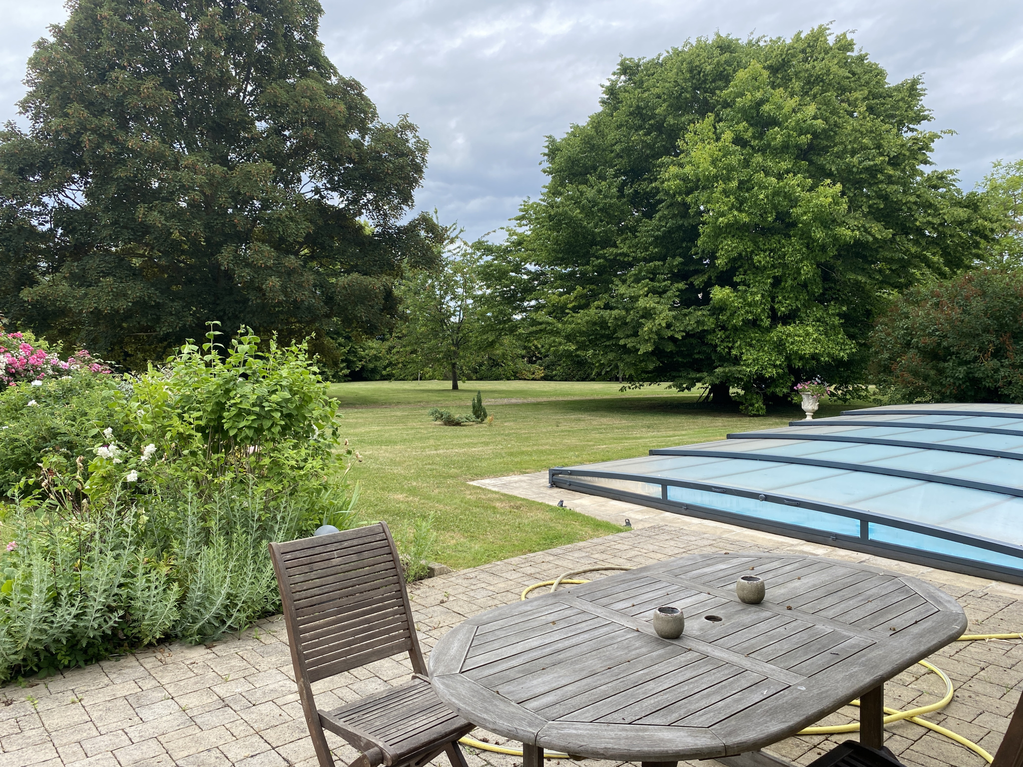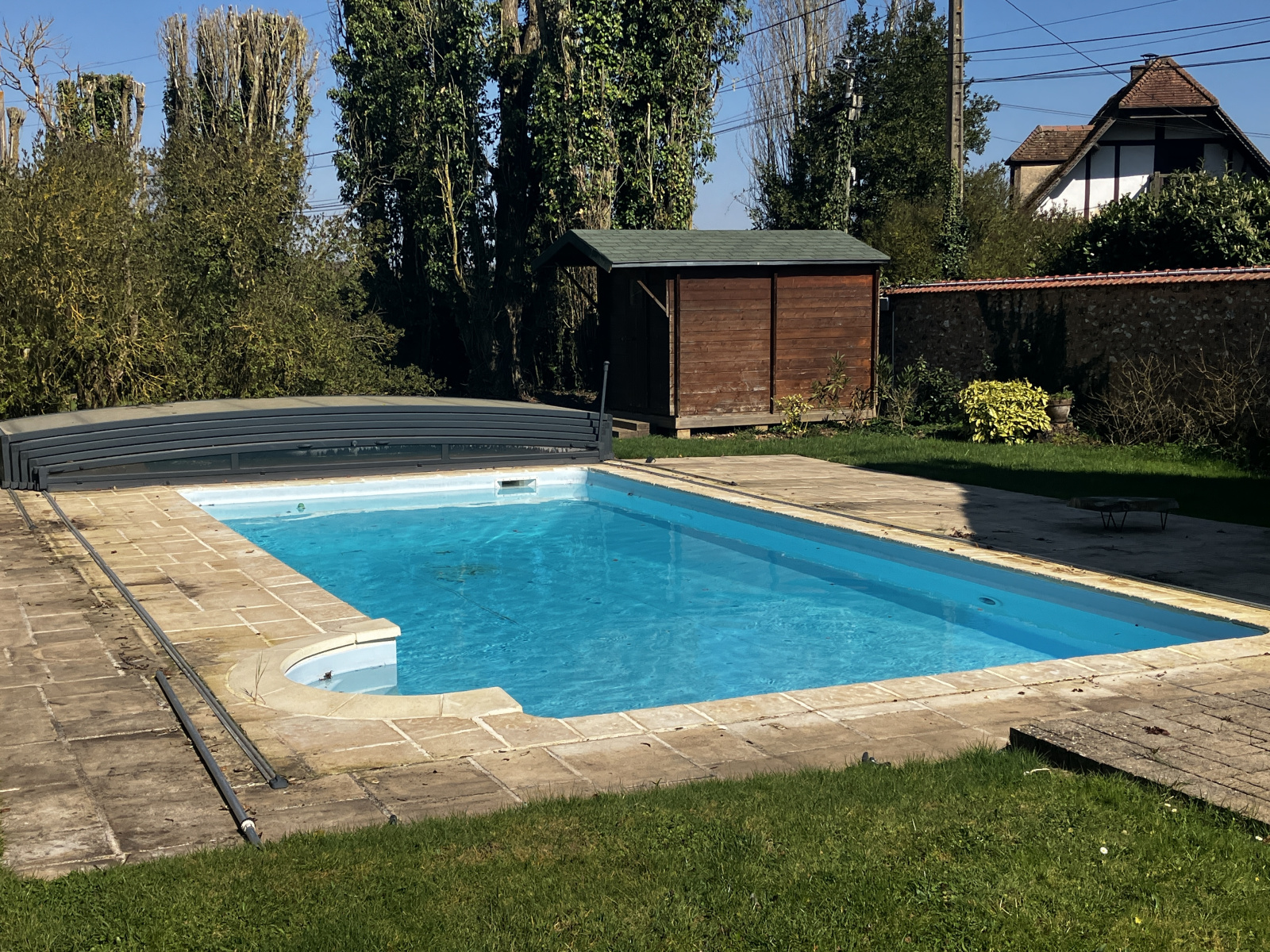 Belle terrasse, piscine chauffée et carport pour deux voitures.