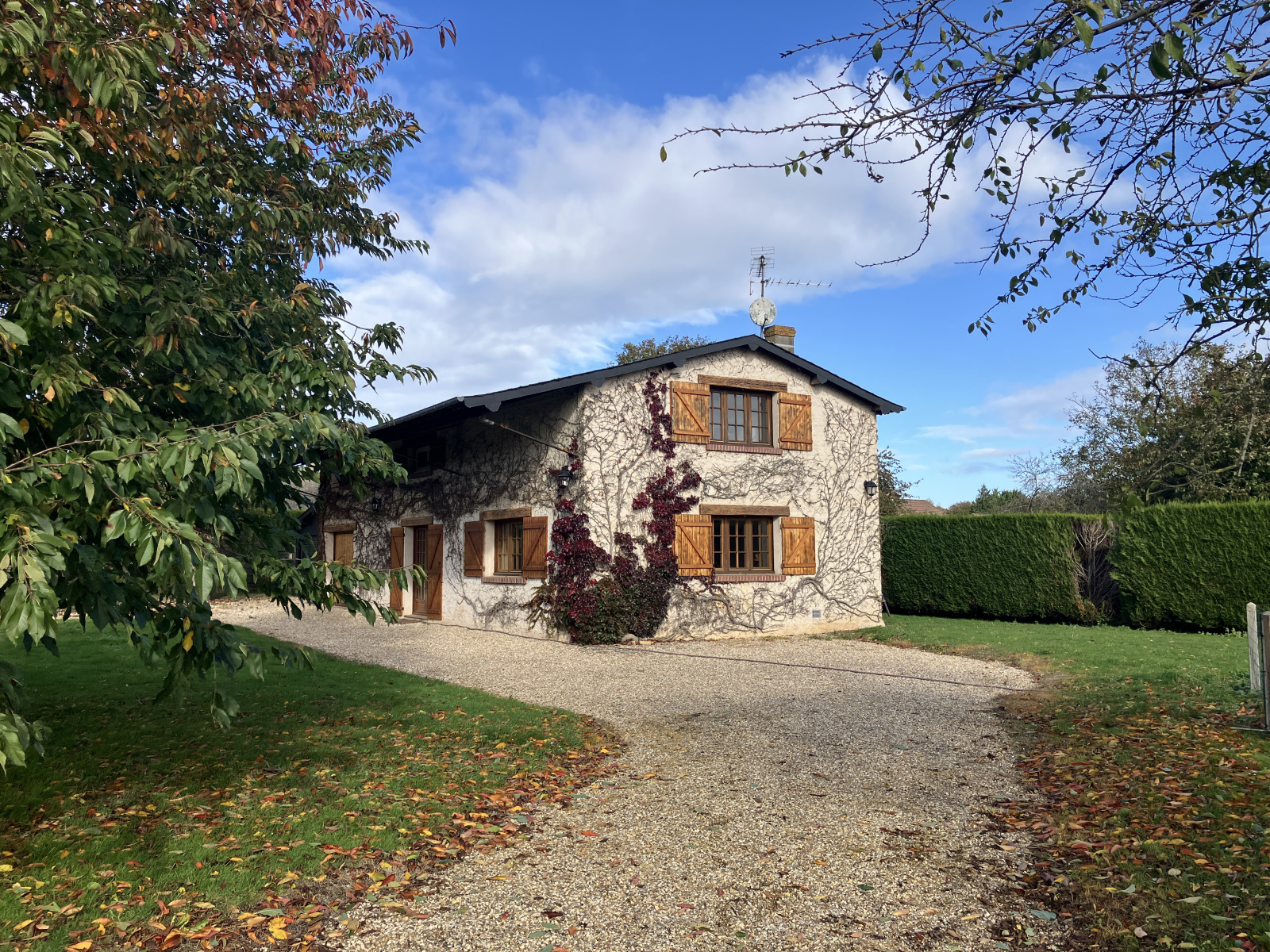 Jolie maison traditionnelle située dans un petit village et édifiée sur un beau terrain arboré.