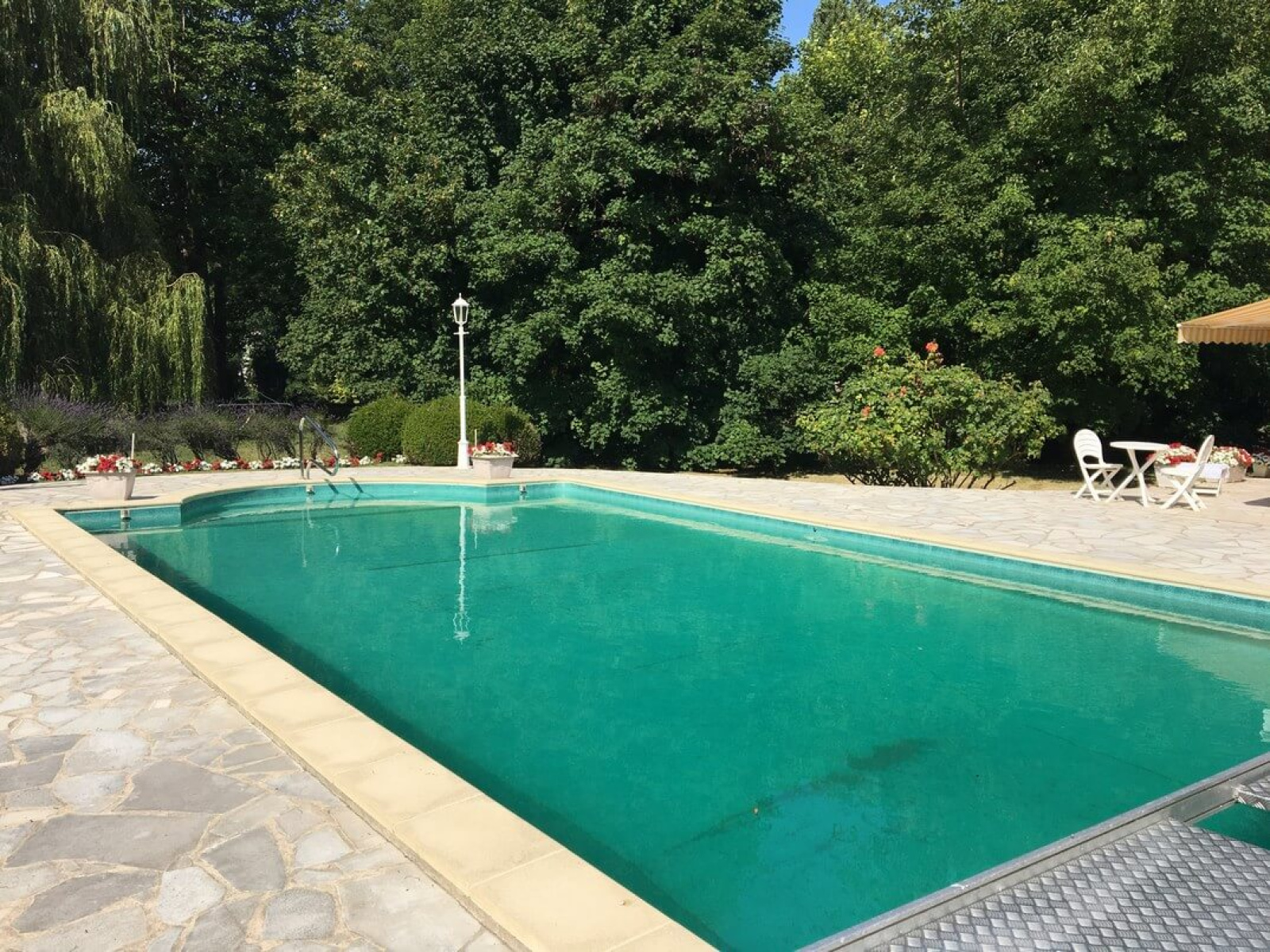 MT 20586. VALLÉE D'EURE BORD DE RIVIERE. Proximité de PACY SUR EURE. Site privilégié très calme. Laissez-vous séduire par cette belle propriété au bord de l'Eure, d'une surface habitable d'environ 272 m². RDC : Entrée, séjour très lumineux de 41.38 m² avec cheminée, cuisine aménagée 14.41 m², chambre avec salle de douches/wc 14.43 m², chambre avec salle de douches 14.26 m², chambre avec salle de douches 14.05 m², suite parentale composée d'une chambre 12.87 m² et d'une salle de bains/douches/wc 6.19 m², wc avec lave-mains. À l'étage : Palier, grande pièce à usage de salle de danse 58.15 m² avec coin bar aménagé 45.44 m², salle de billard 51.54 m², wc lave-mains. Chauffage central au gaz propane.Terrasse. Garage, atelier, chaufferie, bûcher. Grande piscine 6 x13 chauffée par chaudière gaz. Assainissement non conforme. Terrain : 7.580 m² en bord de rivière.