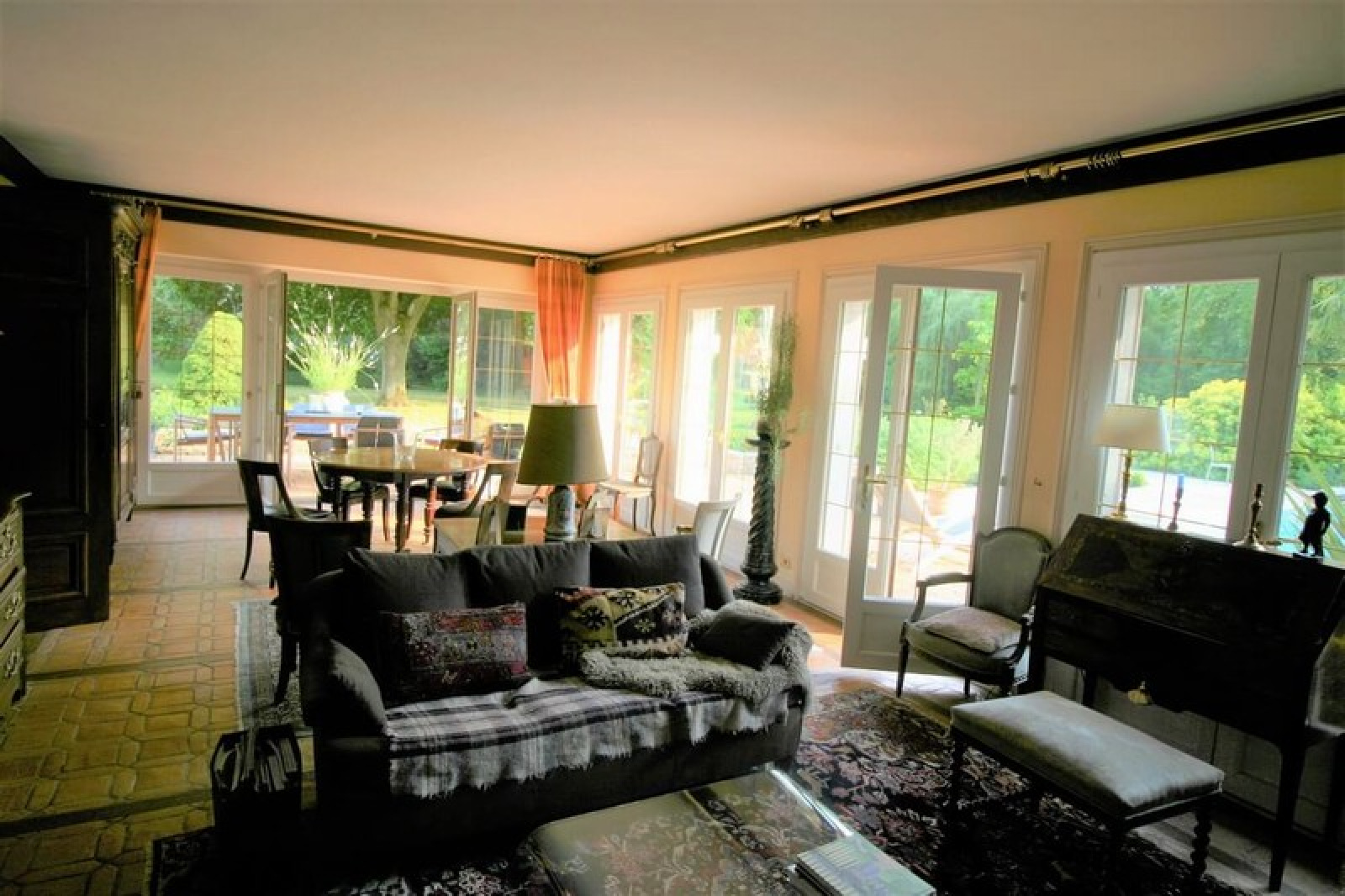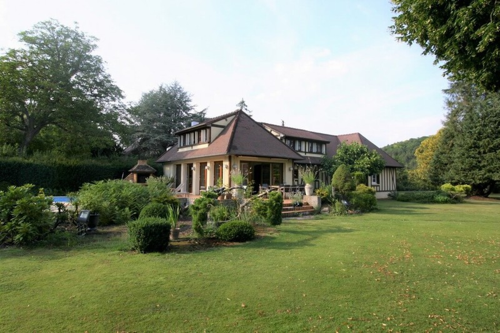 MT 20444. VALLÉE D'EURE. Proximité de PACY SUR EURE. Site privilégié très calme. Maison de construction traditionnelle en parfait état d'une surface habitable totale d'environ 220 m². MAISON PRINCIPALE 160 m² : RDC : Entrée avec placard, séjour 43 m² avec cheminée et terrasse avec piscine, cuisine aménagée, office buanderie, dégagement, chambre 15,60 m² avec dressing, bureau 15,50 m², salle de bains wc. Étage : 4 chambres 30, 20, 18, 18 m², salle de bains/wc, wc. Chauffage central au fuel, portier vidéo, portail automatique, arrosage automatique, éclairage de jardin. Maison d?amis 60 M² environ : Séjour, cuisine, chambre, salle de douche, wc. Garage. PISCINE 4,80M X11M AVEC COUVERTURE ÉLECTRIQUE. Terrain : Parc 4.679 m² en BORDURE DE RIVIERE.