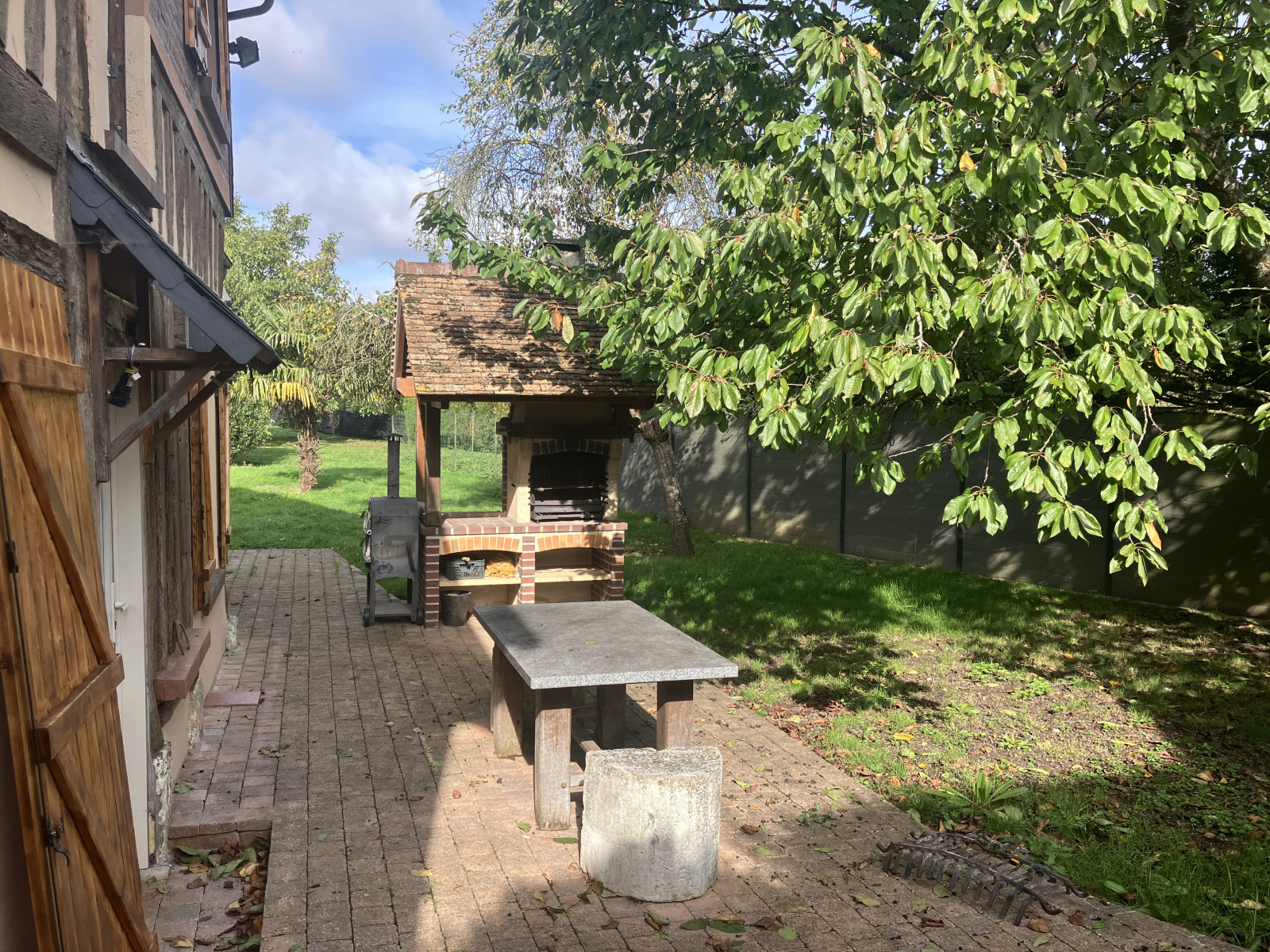 Propriété ancienne joliment rénovée située dans un village et édifiée sur un beau terrain clos et arboré.