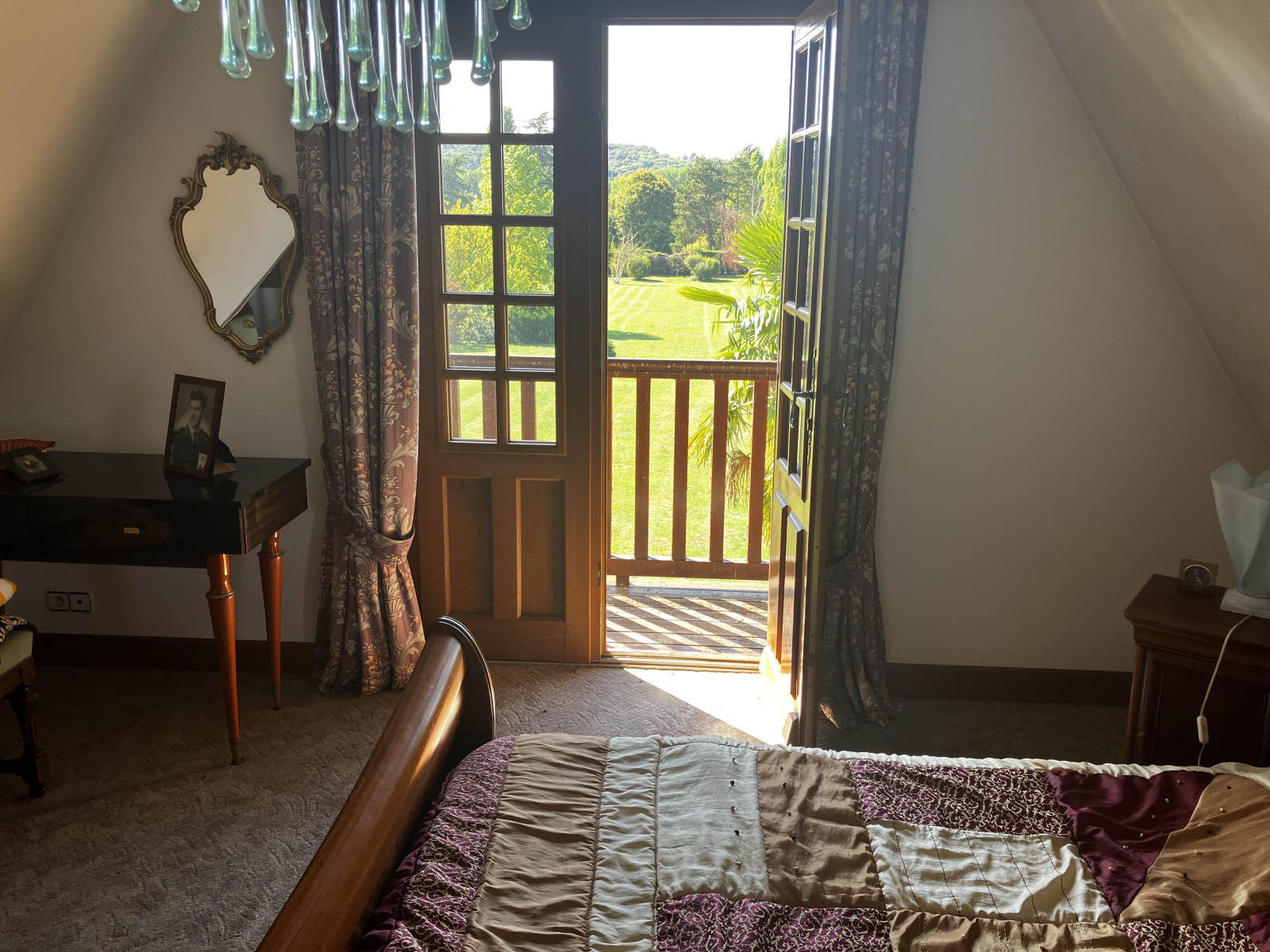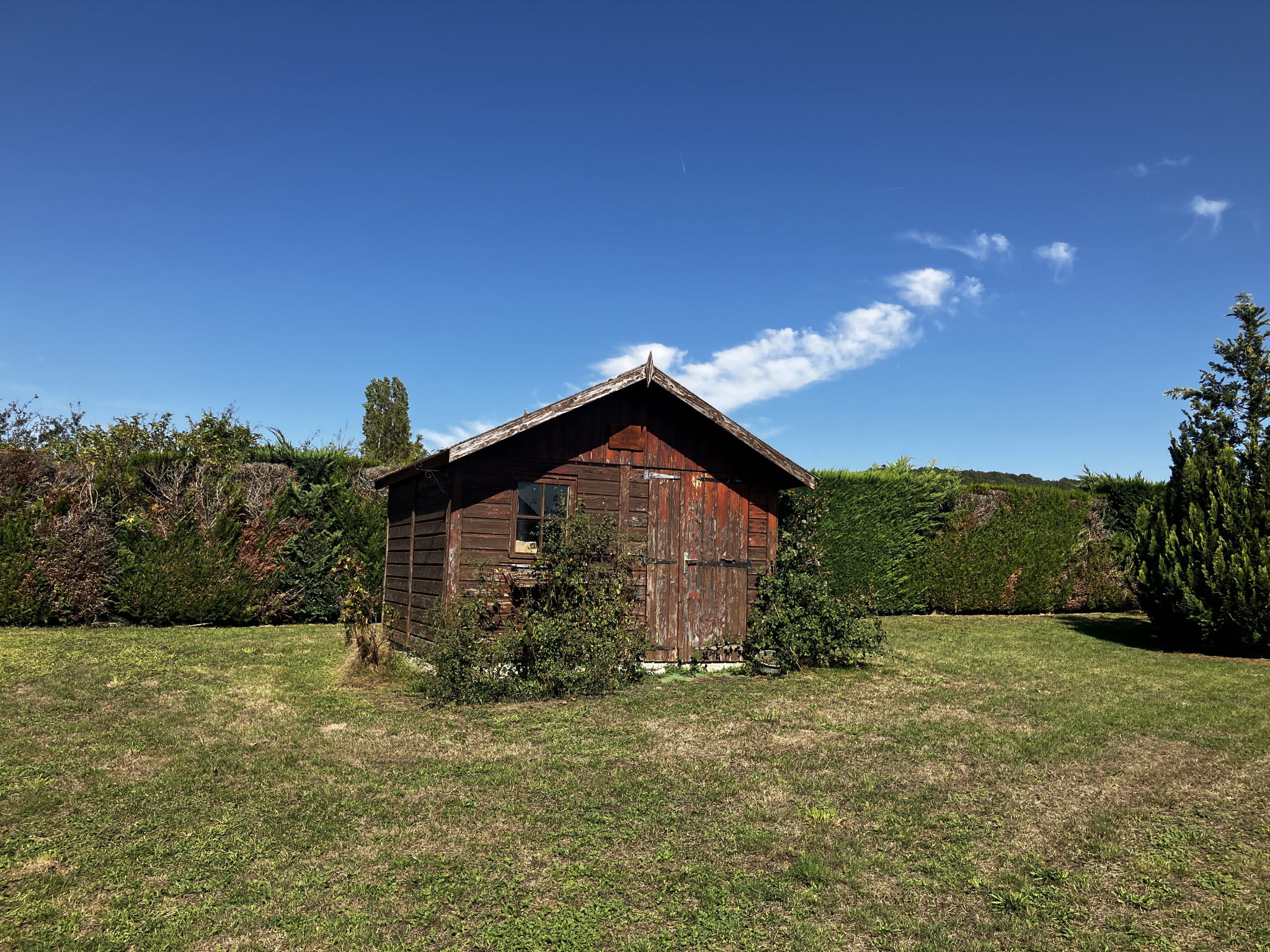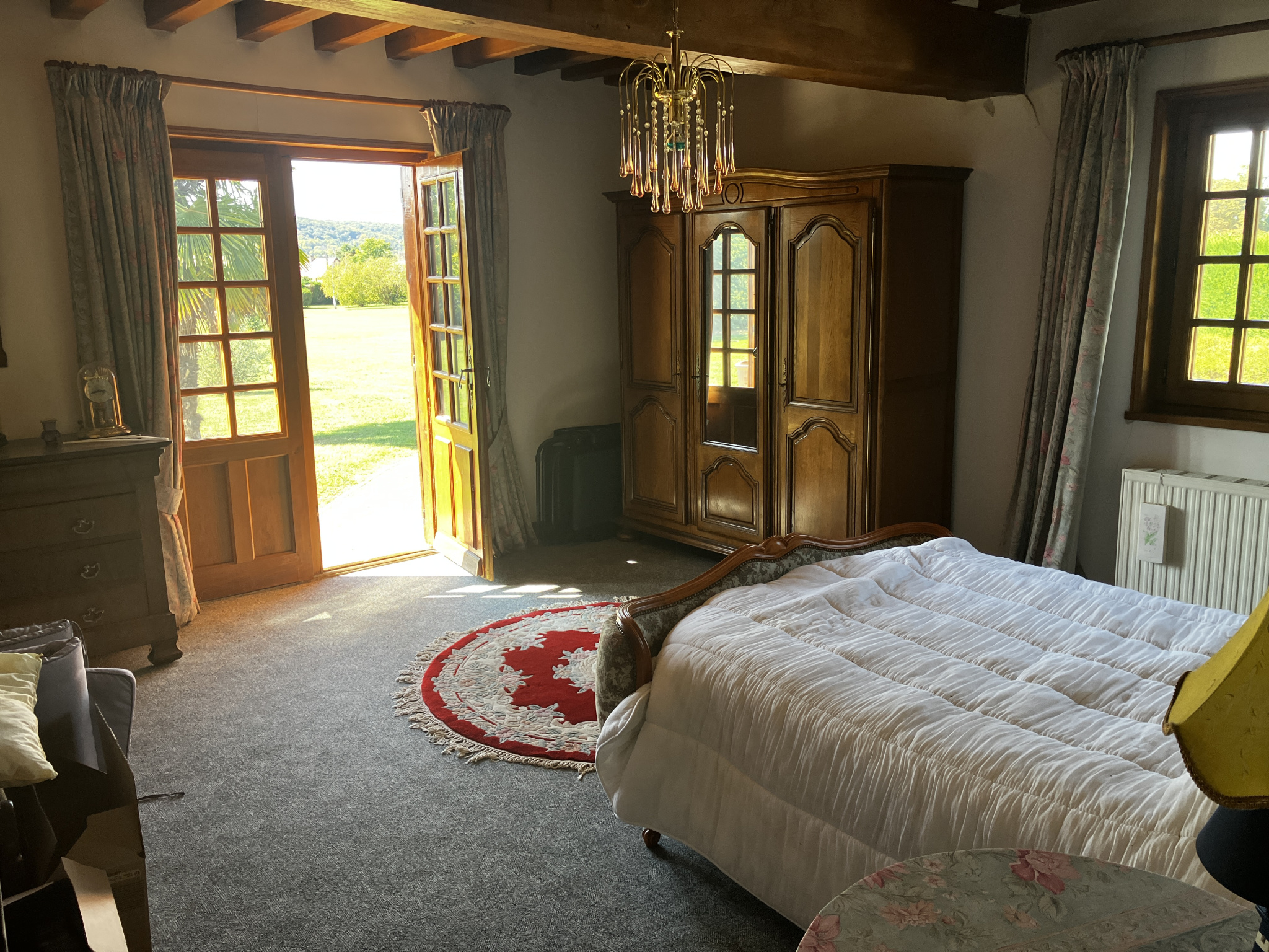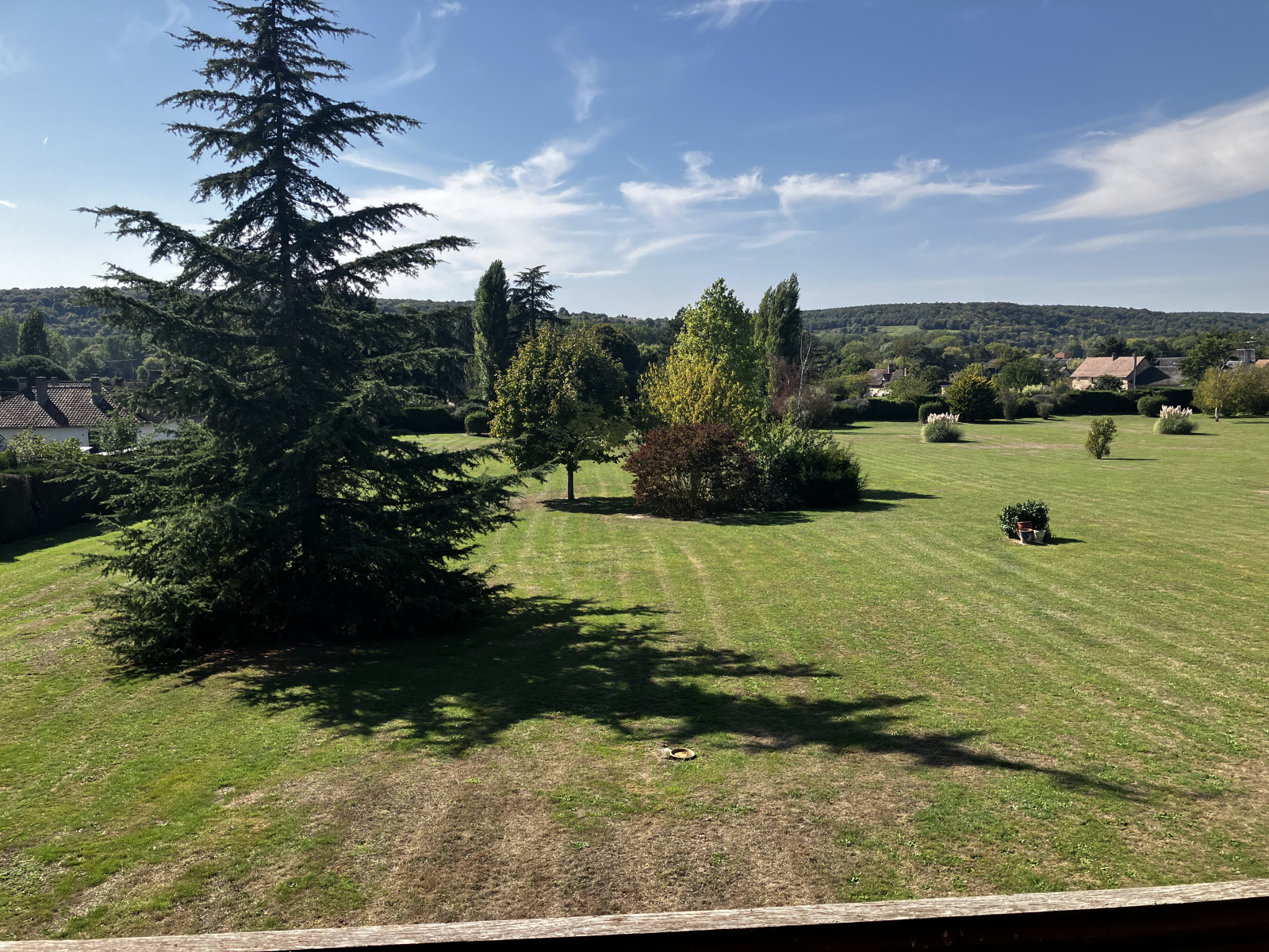 Jolie propriété traditionnelle à colombages édifiée sur un grand terrain arboré avec tennis et située dans un village avec commerces et écoles.