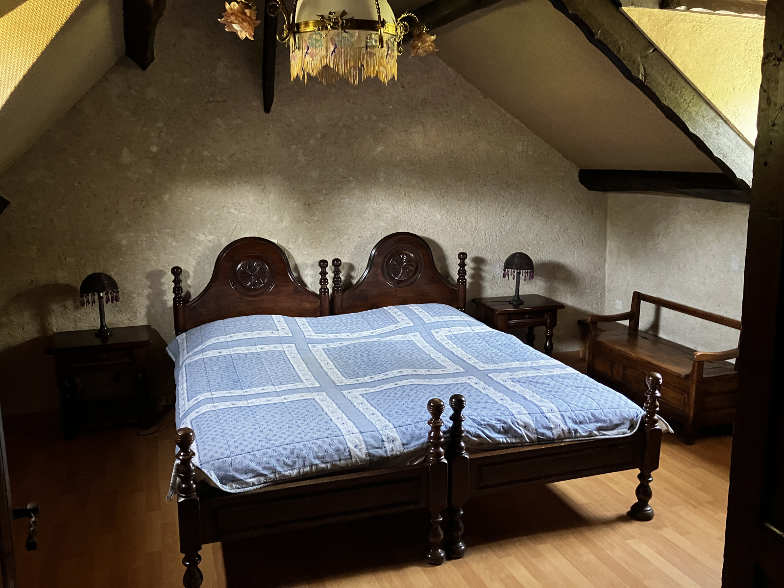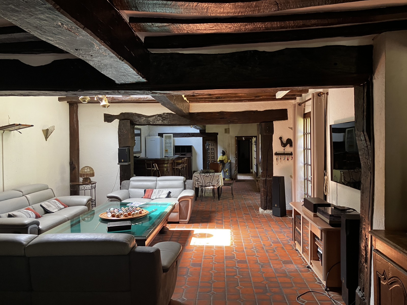 La maison, d’une surface habitable de 292 m², comprend au rez-de-chaussée : entrée de 20.03 m², salon-salle à manger de 100.81 m² avec cheminée et coin bar, cuisine aménagée de 22.56 m² avec porte-fenêtre donnant sur terrasse, chambre de 20.22 m² avec salle de douches/wc de 7.61 m², chambre ou bureau de 17.07 m², sauna avec douches, pièce de 15.07 m² à usage de chambre. À l’étage : palier desservant, dégagement, deux chambres dont une avec salle de bains/wc (17.59 m² et 15.76 m²). Un second escalier mène à deux chanbres mansardées.