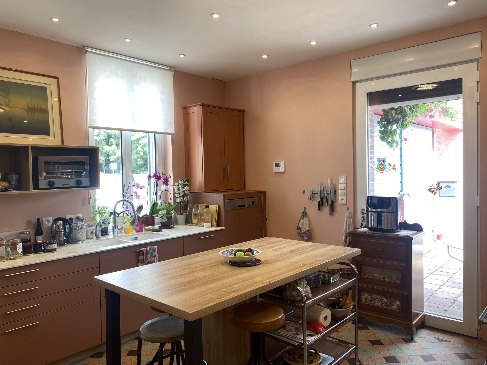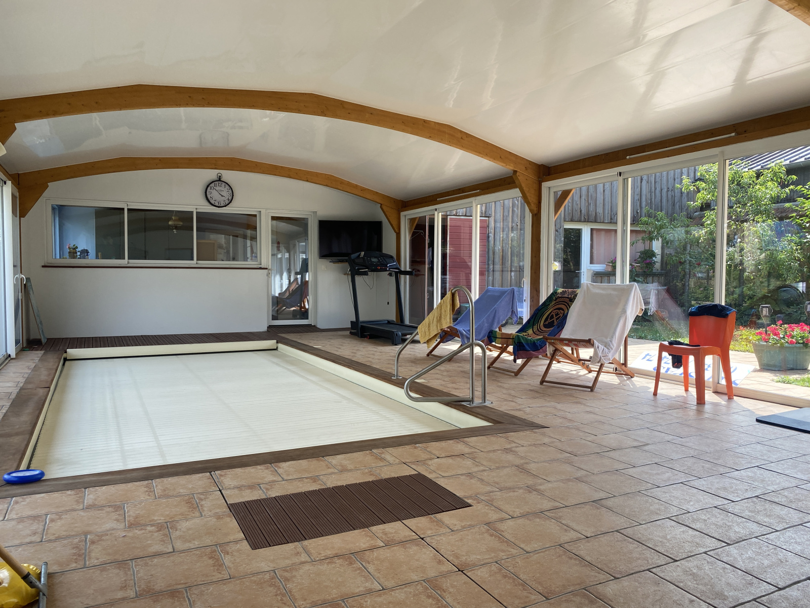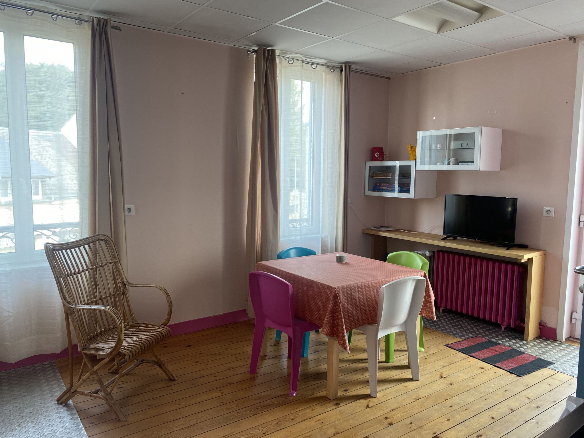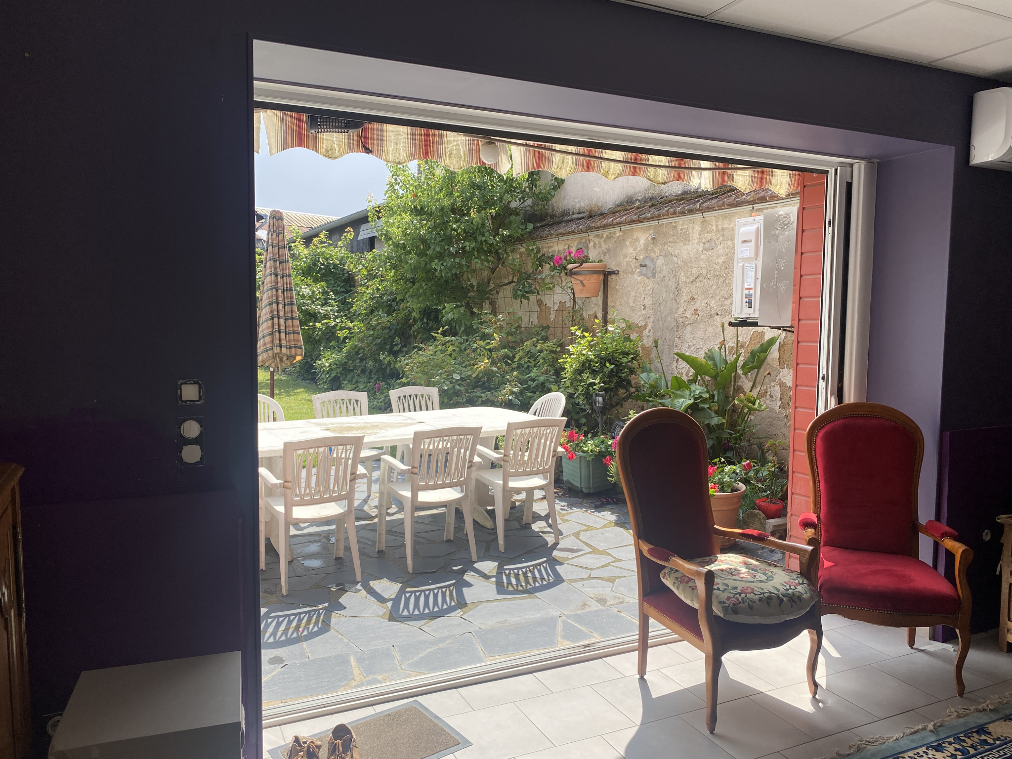 Tout confort : pompe à chaleur, split réversible, chauffage électrique au sol dans le salon, réserve d’eau.