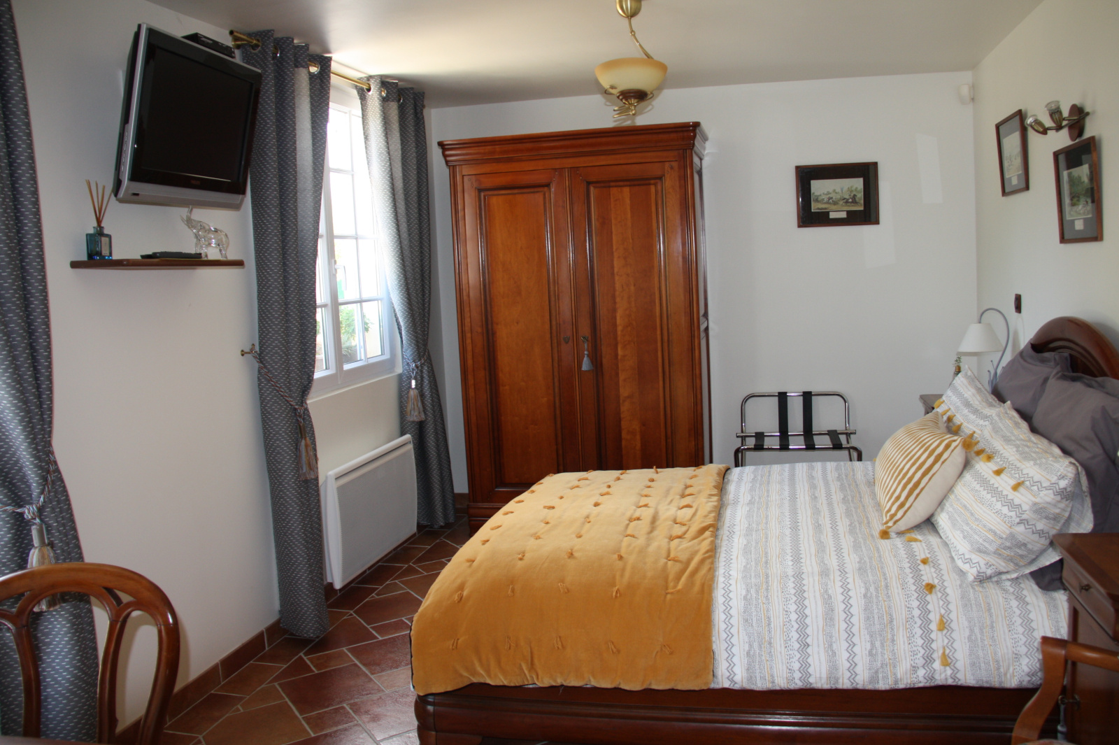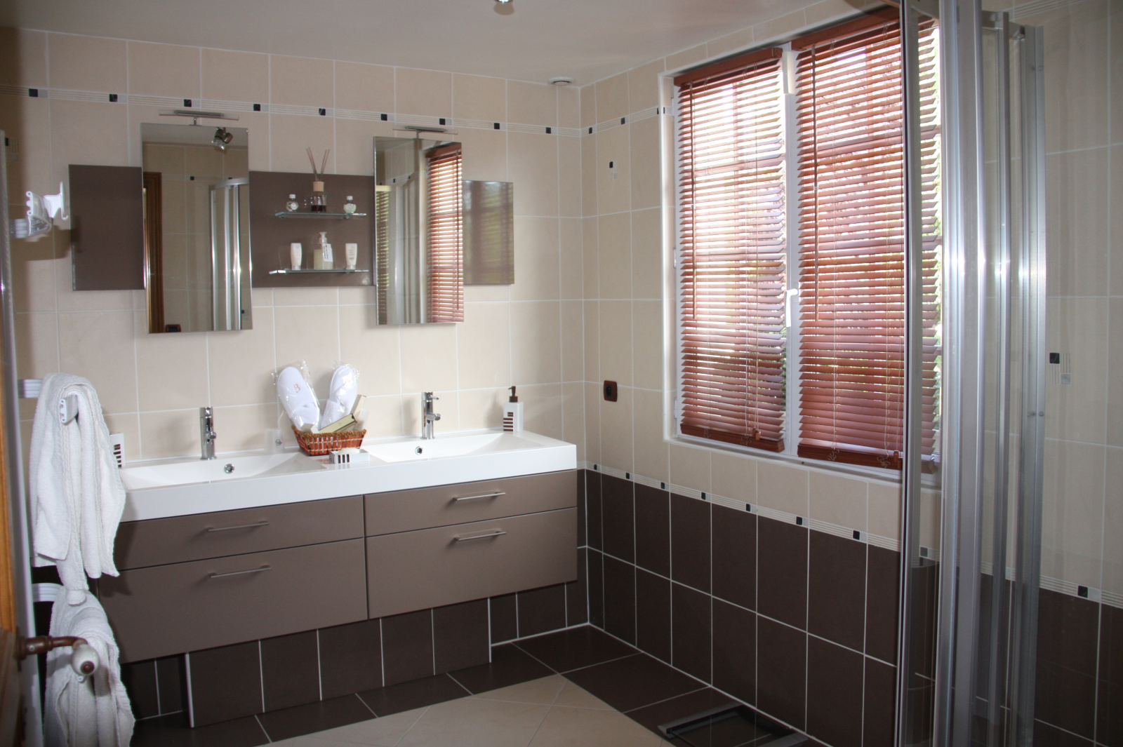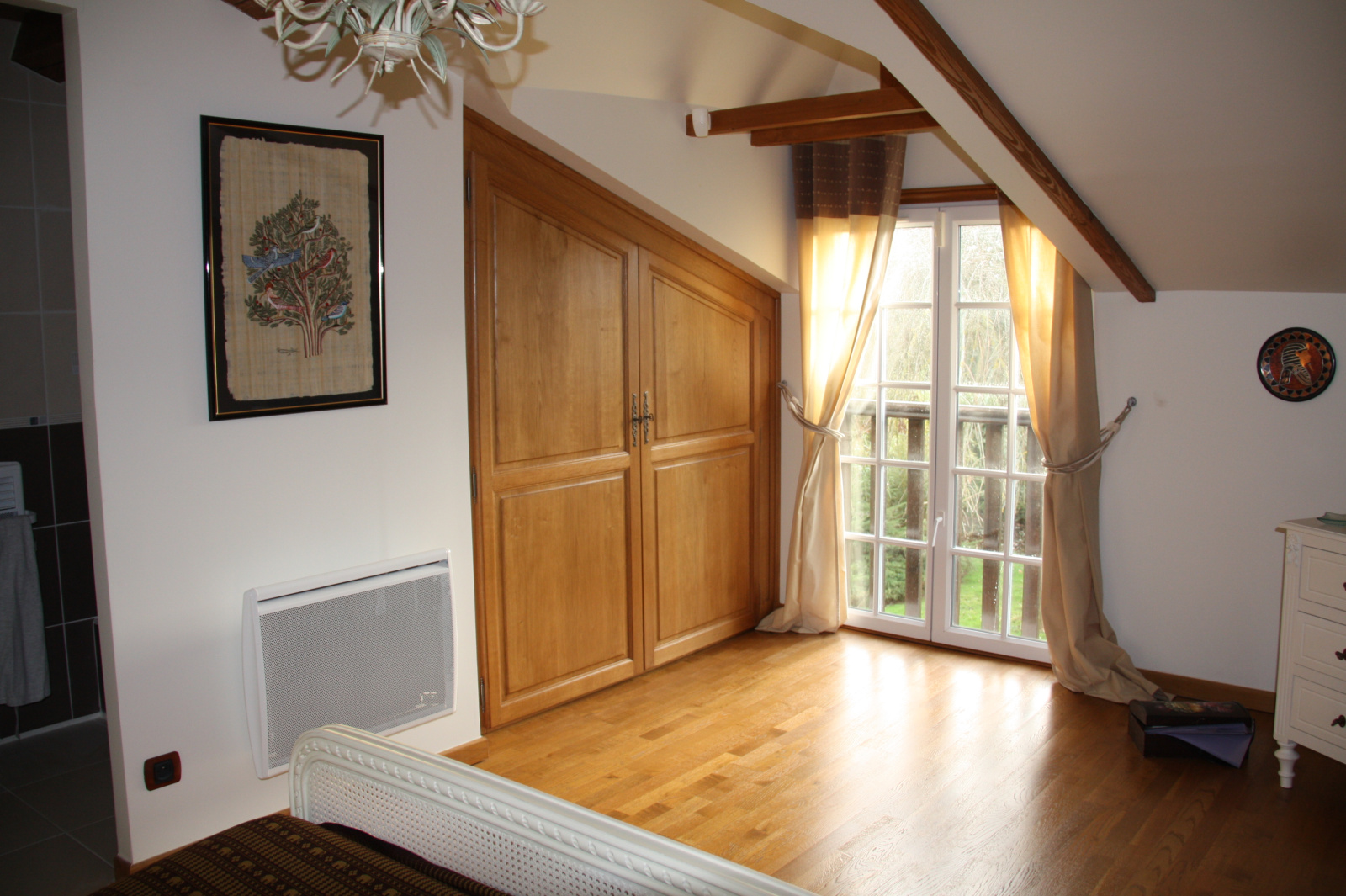 La maison d’amis, reliée à la maison principale par un couloir vitré, comprend au rez-de-chaussée : entrée, de 7.25 m², chambre de 13 m² avec salle de douches de 6.60 m², dégagement de 3.75 m². À l’étage : pièce palière de 13.97 m², chambre de 17.42 m², salle de douches de 3.67 m².