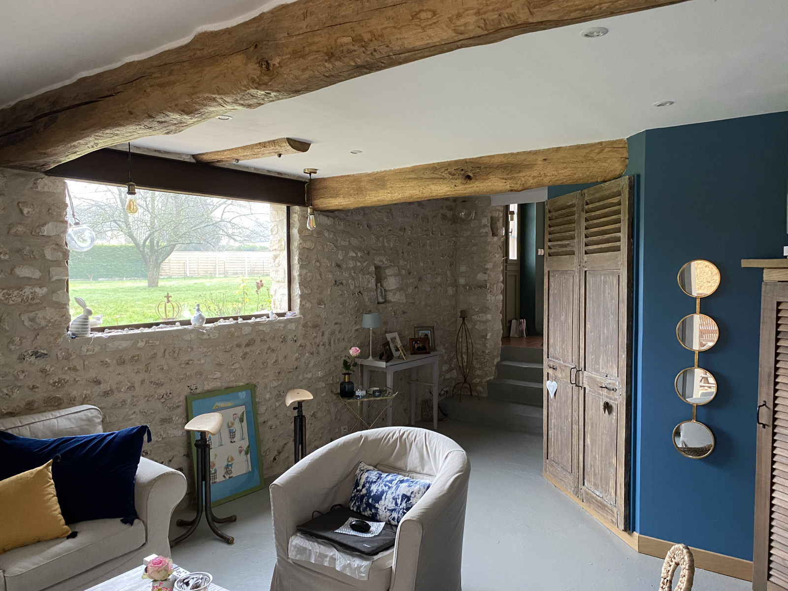 Dans un joli village, maison ancienne entièrement rénovée d’une surface habitable de 125 m² comprenant : entrée 5.73 m², cuisine aménagée et équipée de 10.30 m² ouverte sur salle à manger de 28.30 m², salon de 20.60 m², buanderie /chaufferie de 9 m². Par accès extérieur : bureau de 7.70 m², garage. À l’étage : palier desservant de 6 m², 2 chambres de 14.10 m² et 8.50 m², 1 chambre de 23.15 m² (11.50 m² habitables) avec placard, salle de bains / douche à l’italienne de 6.60 m², wc avec lave-mains. Garage. Atelier. Chalet de jardin. Rangement.