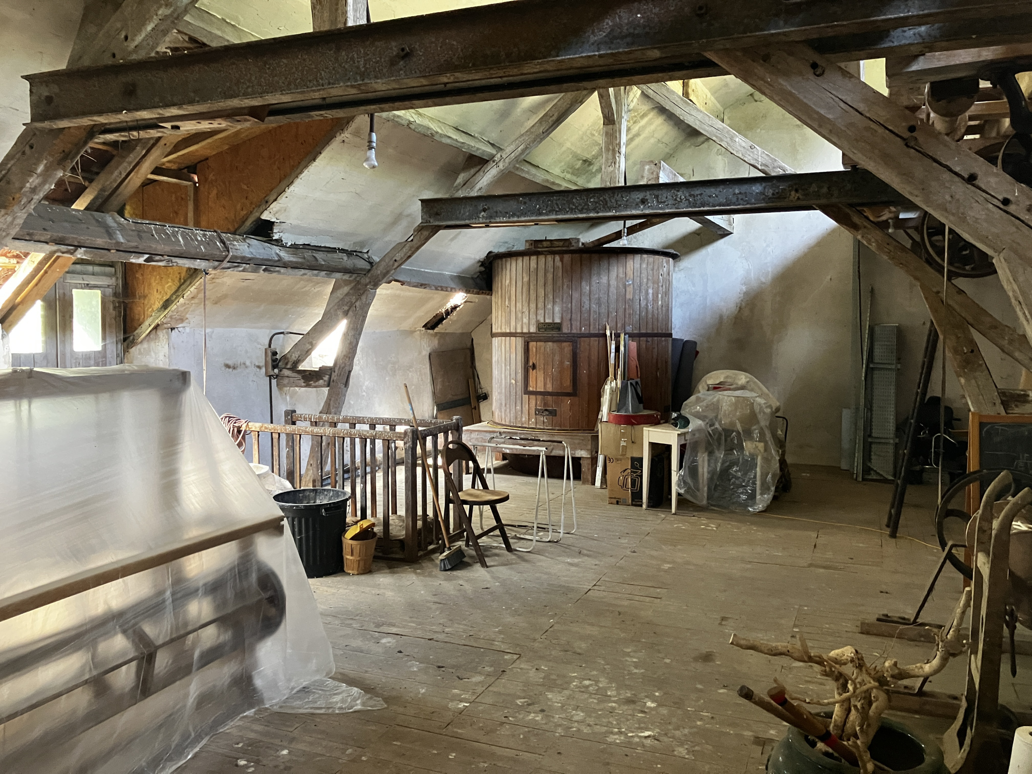 Une maison accolée comprenant au rez-de-chaussée : cuisine de 18.54 m², chambre de 28.28 m² avec salle de bains/wc. À l’étage : trois greniers (73.68 m², 74 m² et 91.83 m²)