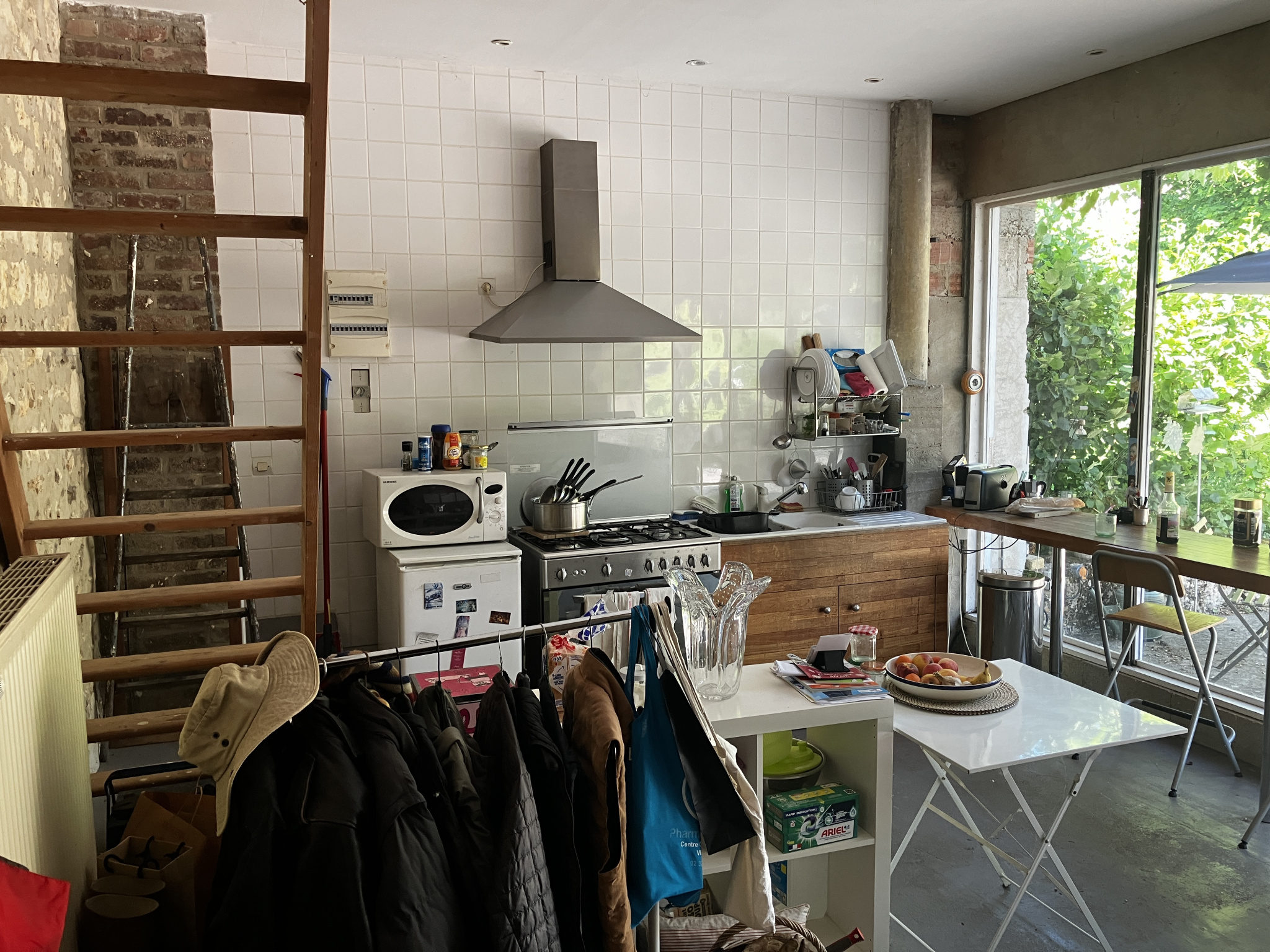 Une petite maison comprenant au rez-de-chaussée : salon de 24.93 m², salle de bains/wc de 7.36 m². À l’étage : pièce de 59.22 m² à usage de salon et de chambre avec kitchenette. Cave et garage.